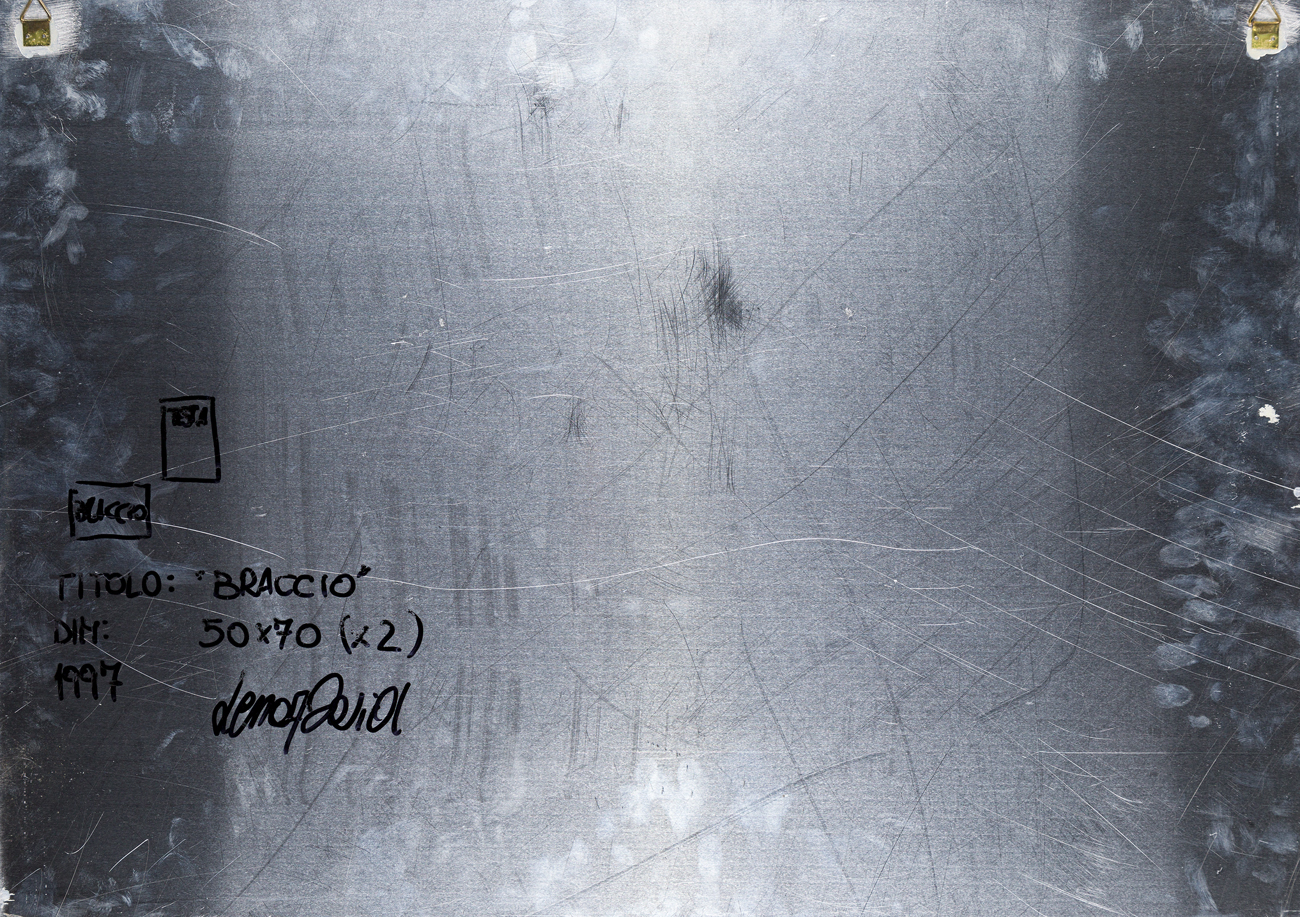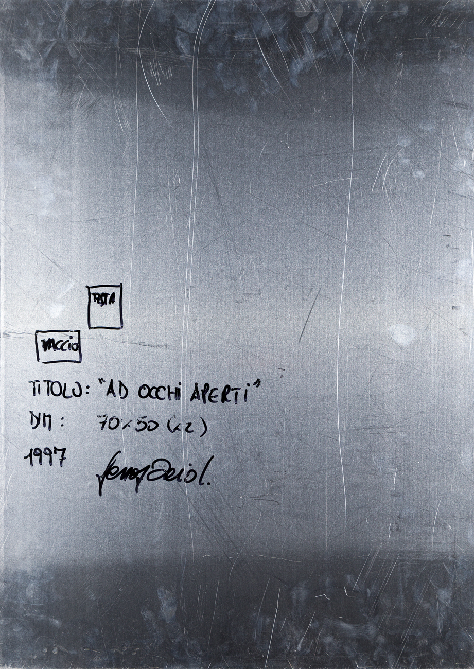Firma, titolo, datazione, misure e indicazioni per il posizionamento al retro