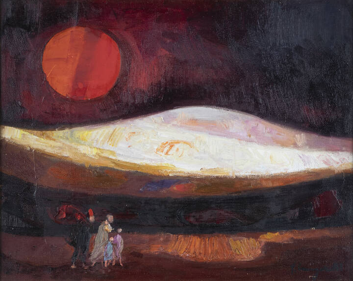 TRENTO LONGARETTI<BR>Treviglio (BG) 1916 - 2017 Bergamo<BR>"Famiglia in cammino nel paesaggio" anni '80