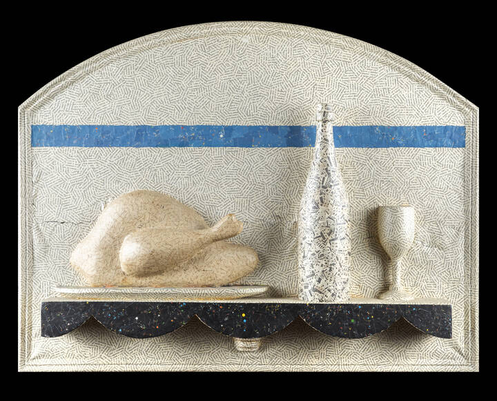 JIRI KOLAR<BR>Praga (Repubblica Ceca) 1914 - 2002<BR>"Fable d'une oie à ne pas manager et d'une couteille à ne pas boire" 1989