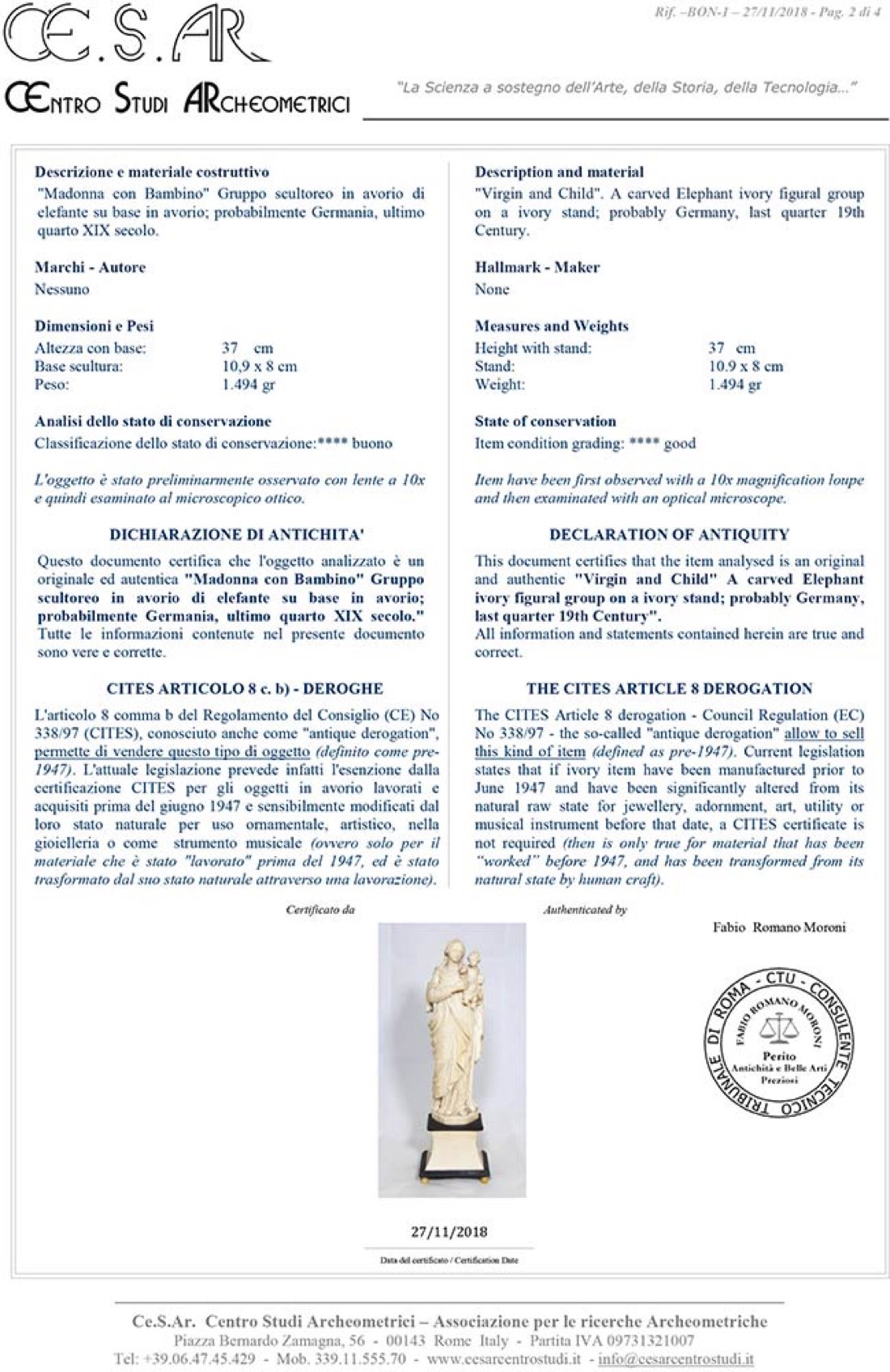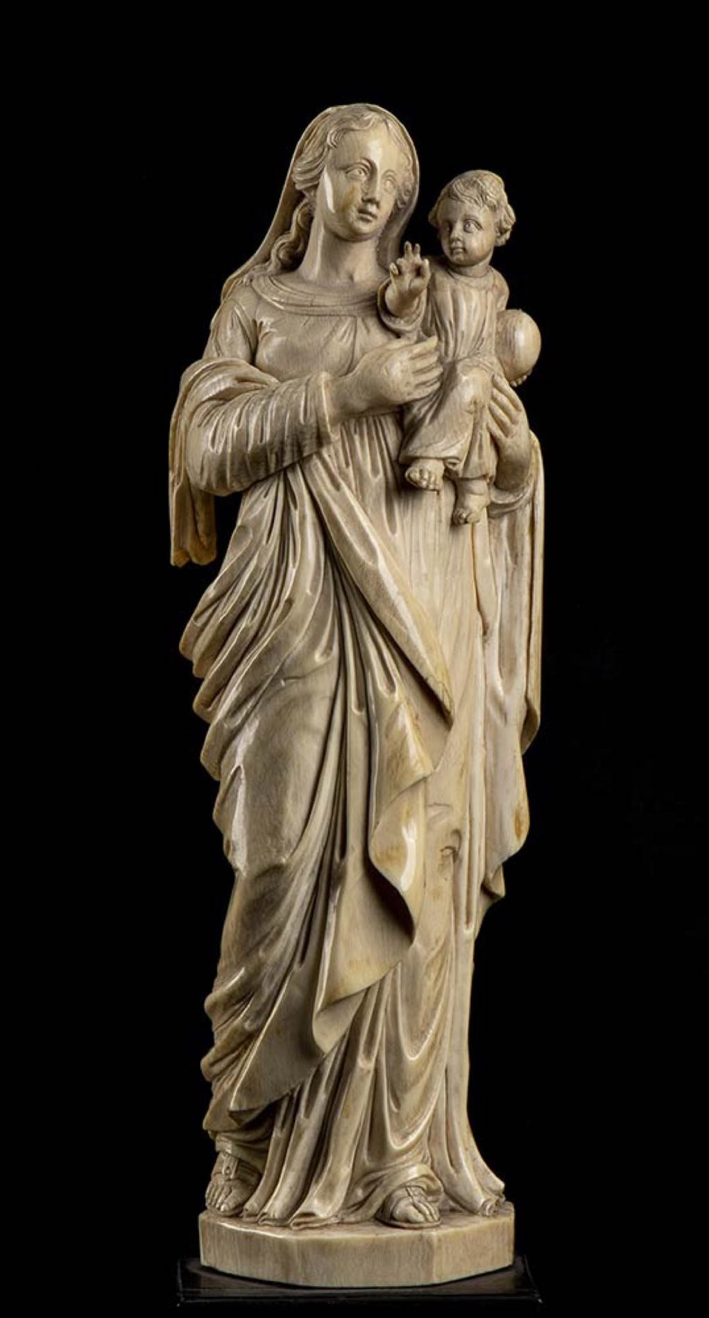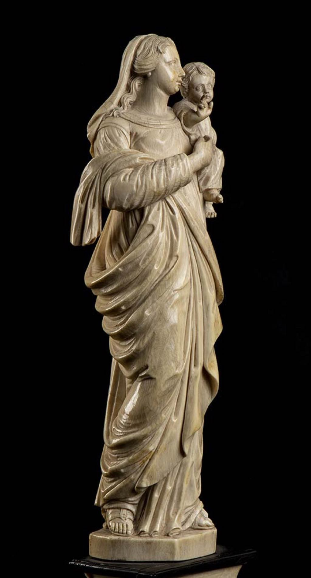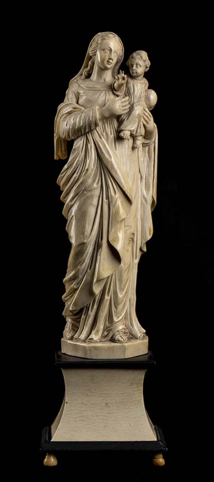 Scultura in avorio raffigurante Madonna con Bambino - probabilmente Germania, ultimo quarto XIX Secolo.