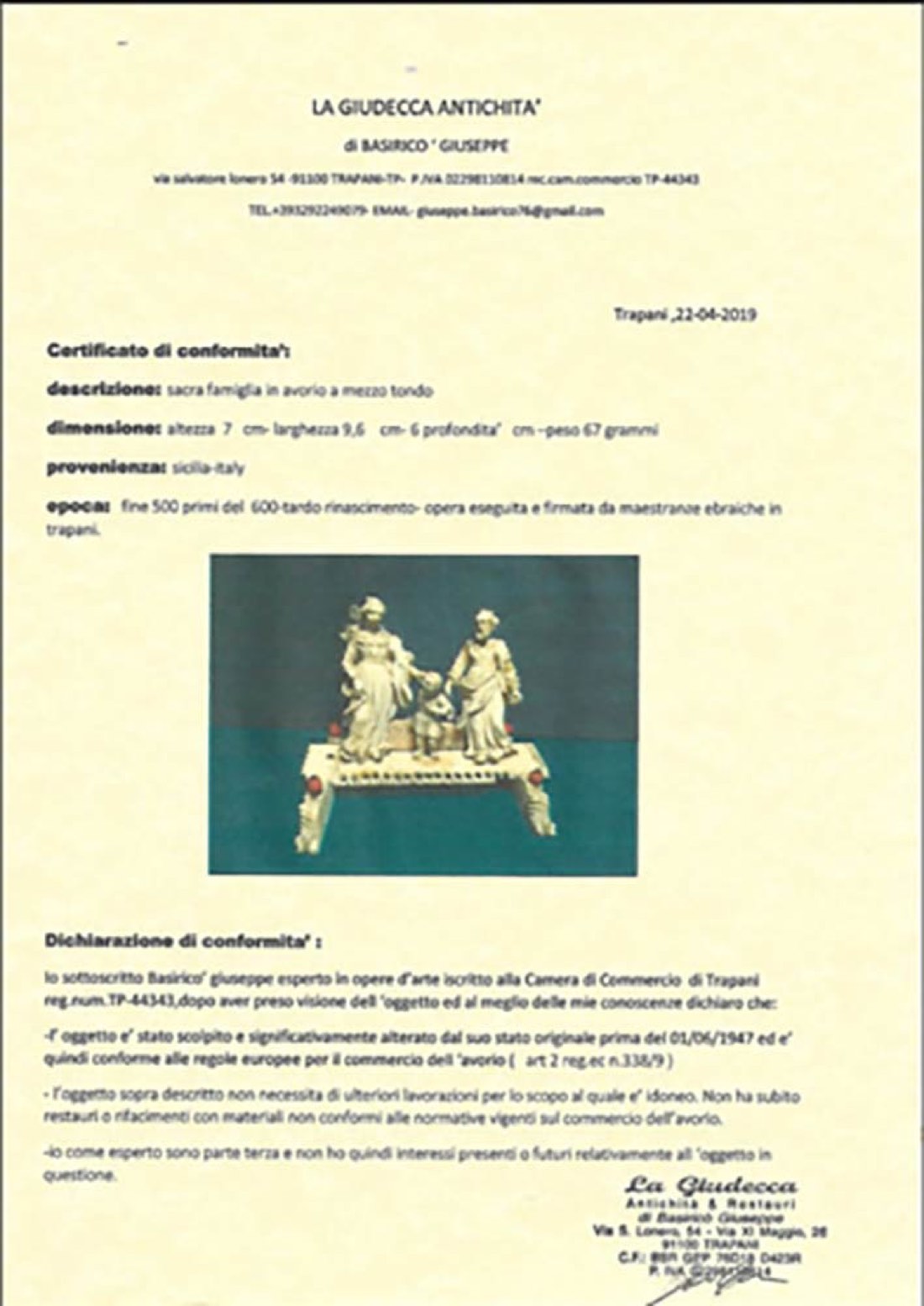 Sacra Famiglia in avorio - probabilmente Trapani, XVII-XVIII Secolo