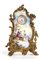 in bronzo dorato e porcellana dipinta a mano e smaltata con la raffigurazione di signore alla moda in scene di campagna, orologio con quadrante bianco e blu con numeri romani. Dimensioni 15 x 10 x 3 cm. Stato di conservazione: **** buono; orologio funzionante ma non revisionato.