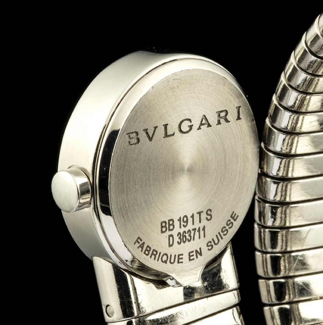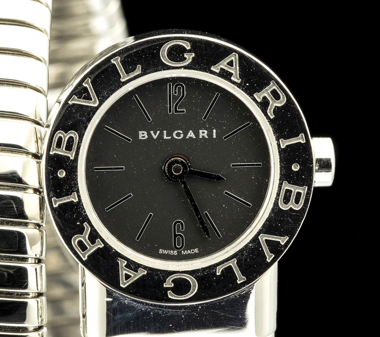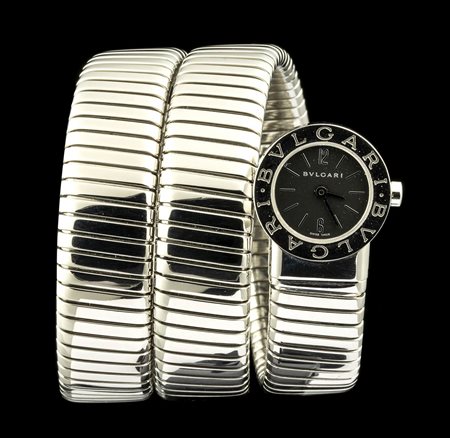 quadrante nero con indici applicati a bastone e numeri arabi. Modello Tubogas Ref. BB191TS anno 2000 circa con movimento al quarzo e vetro zaffiro. Diametro della cassa 19 mm, bracciale misura media.
