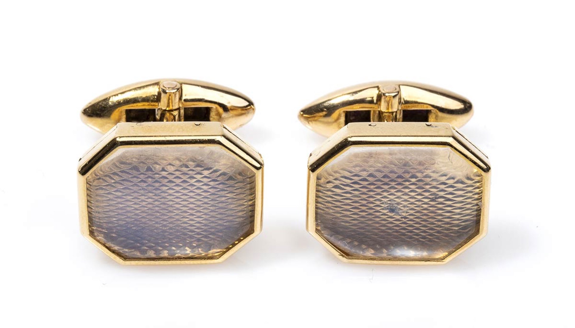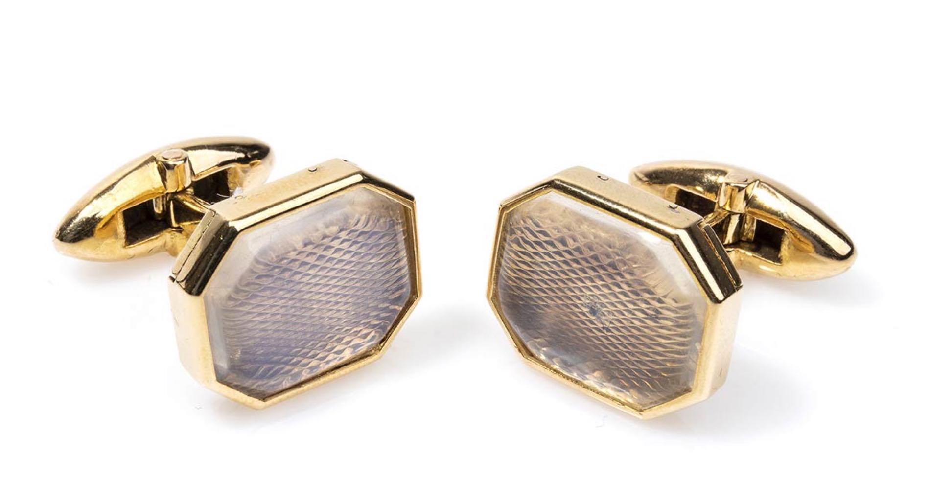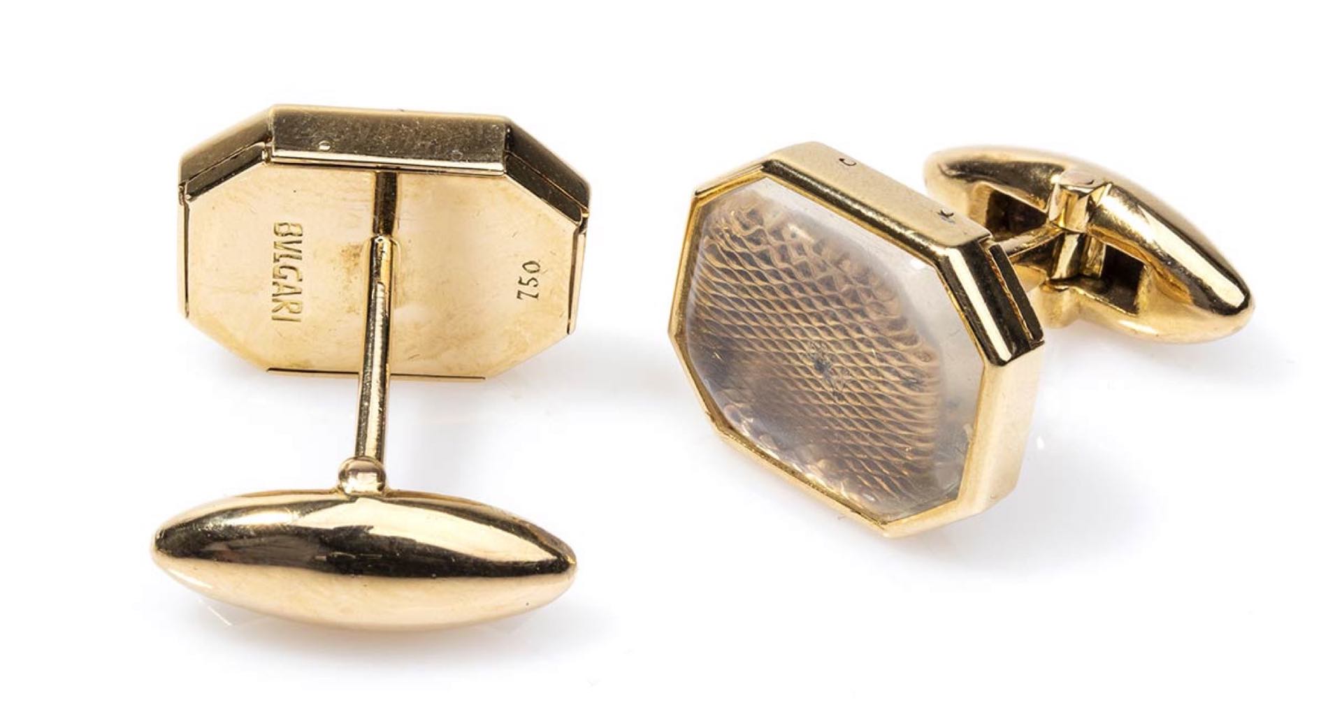 oro giallo 18k e pietra di luna. Punzonati. "BVLGARI", "750". Dimensioni fronte 17 x 13 mm. Peso 18,8 gr. Stato di conservazione: ***** eccellente.