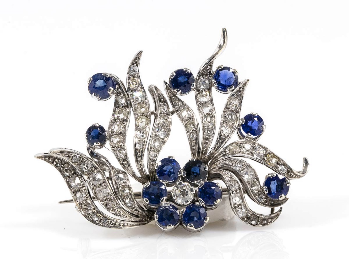 Spilla in oro con diamanti e zaffiri