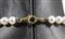 chiusura in oro giallo 18k, filo di perle coltvate d'acqua salata, diametro 7 mm. Punzonata "750". Lunghezza 46 cm. Peso 27,9 gr. Stato di conservazione: ***** eccellente.