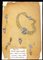 due pagine con disegni di girocolli, anelli, orecchin e bracciali, anni '30. Tecniche miste su carta gialla, applicate su cartoncino. Mancanze e difetti al bordo della carta. Stato di conservazione: *** discreto.