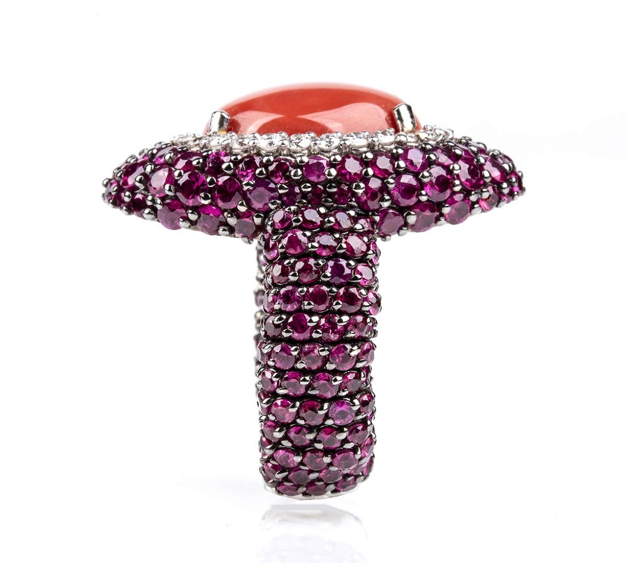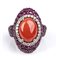 Anello in oro con corallo Mediterraneo, diamanti e rubini