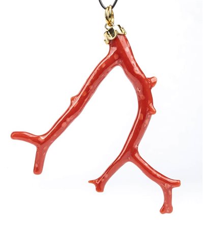 Pendente in oro con ramo di corallo Mediterraneo
