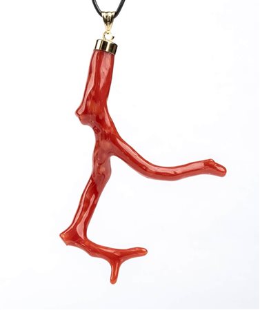 Pendente in oro con ramo di corallo Mediterraneo