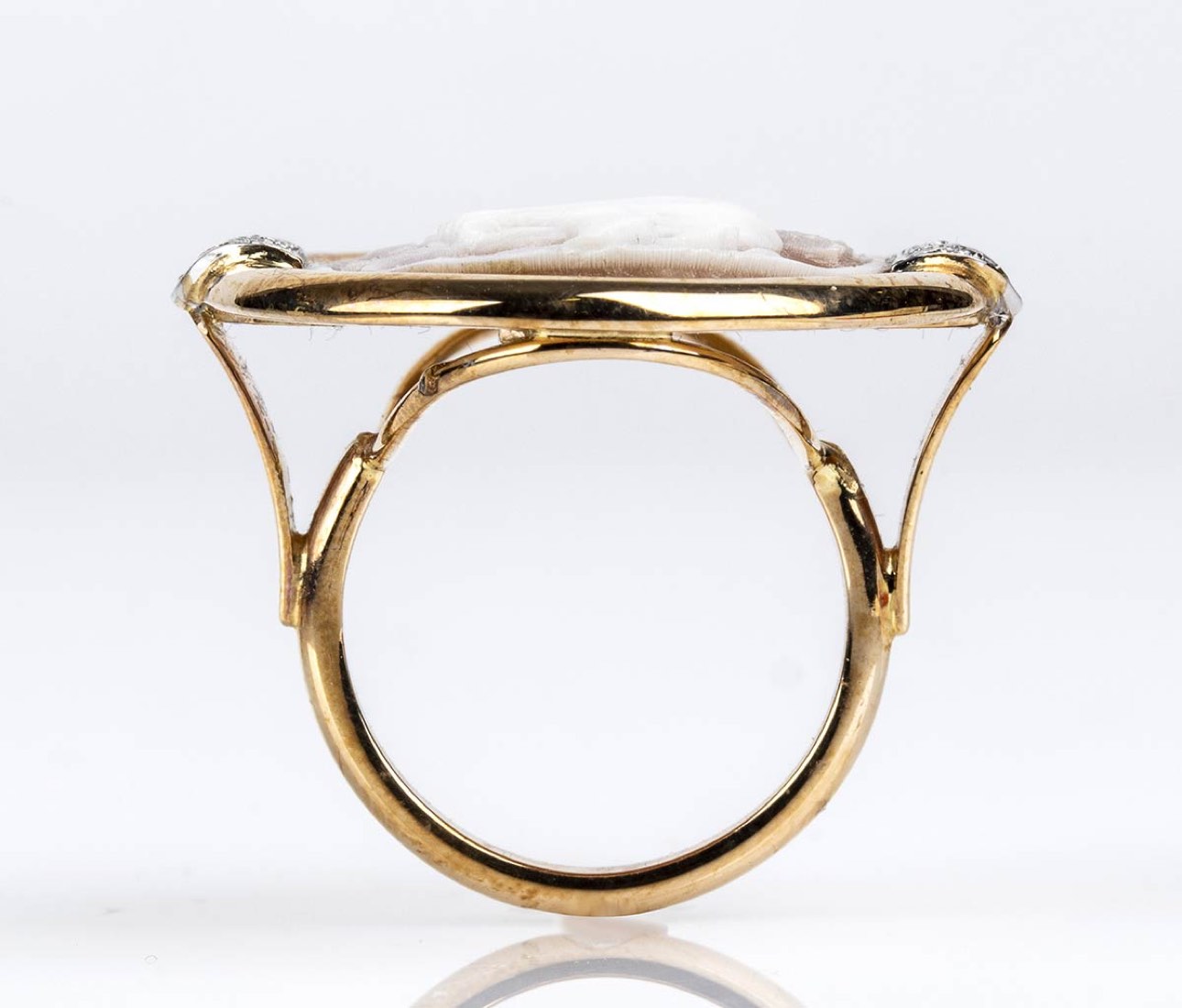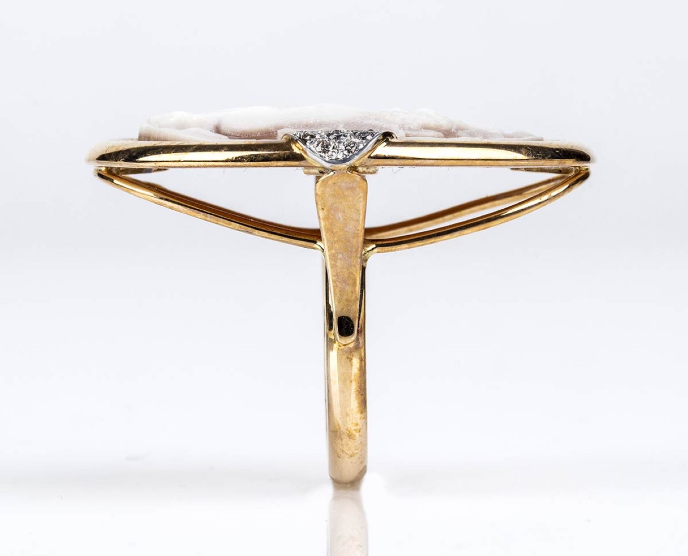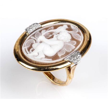 Anello in oro con cammeo in conchiglia e diamanti - manifattura ROVIAN