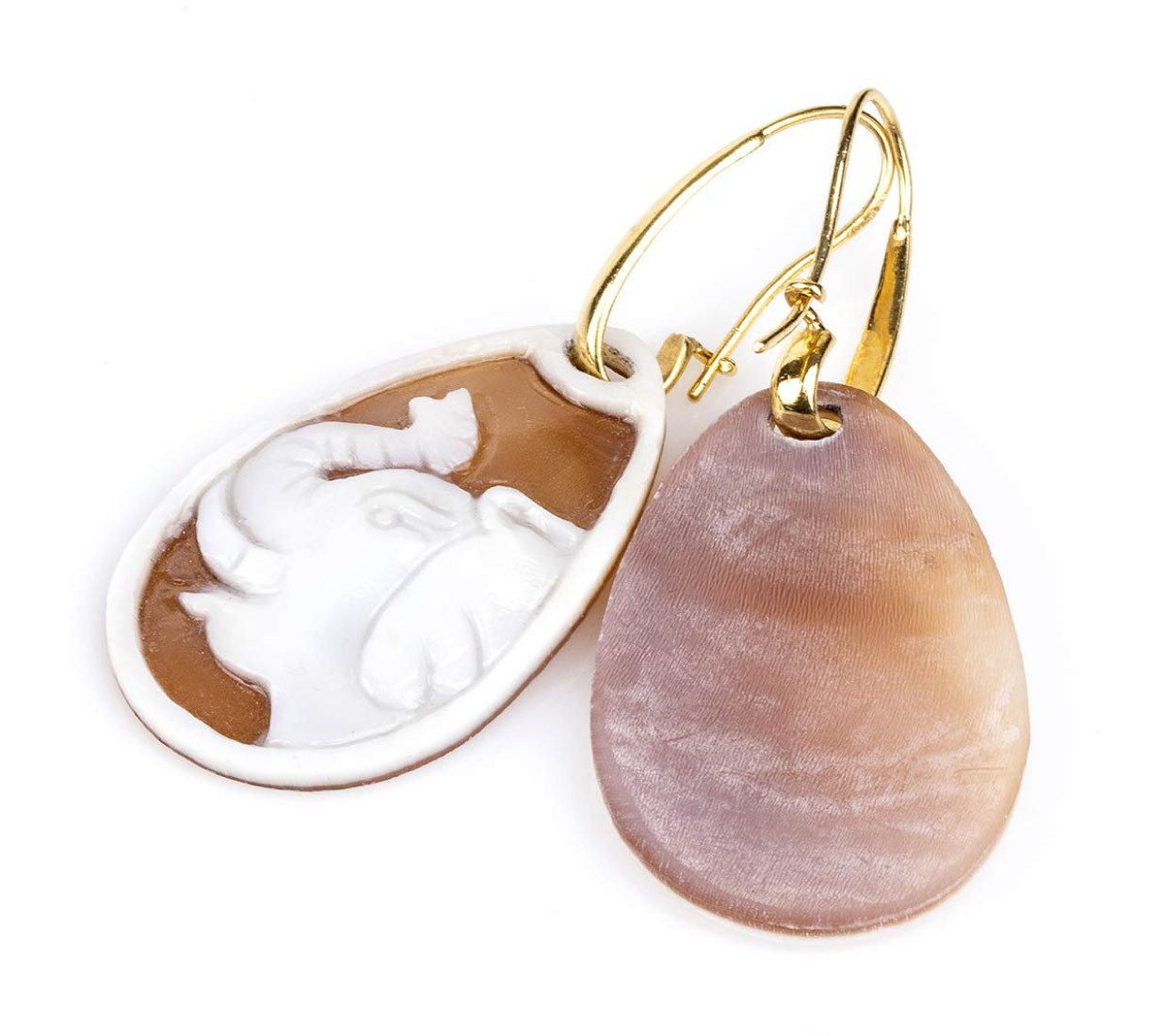 Orecchini pendenti in oro con conchiglia sardonica