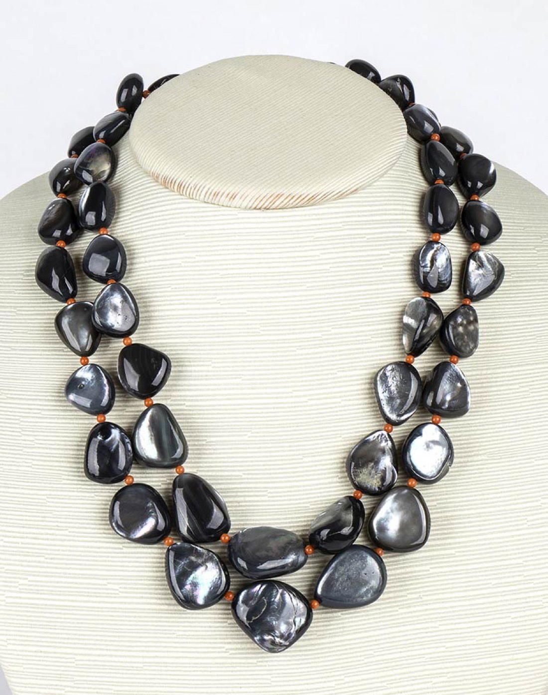 Collana a 2 fili di madreperla di Pinctada Fucata corallo Mediterraneo ed oro