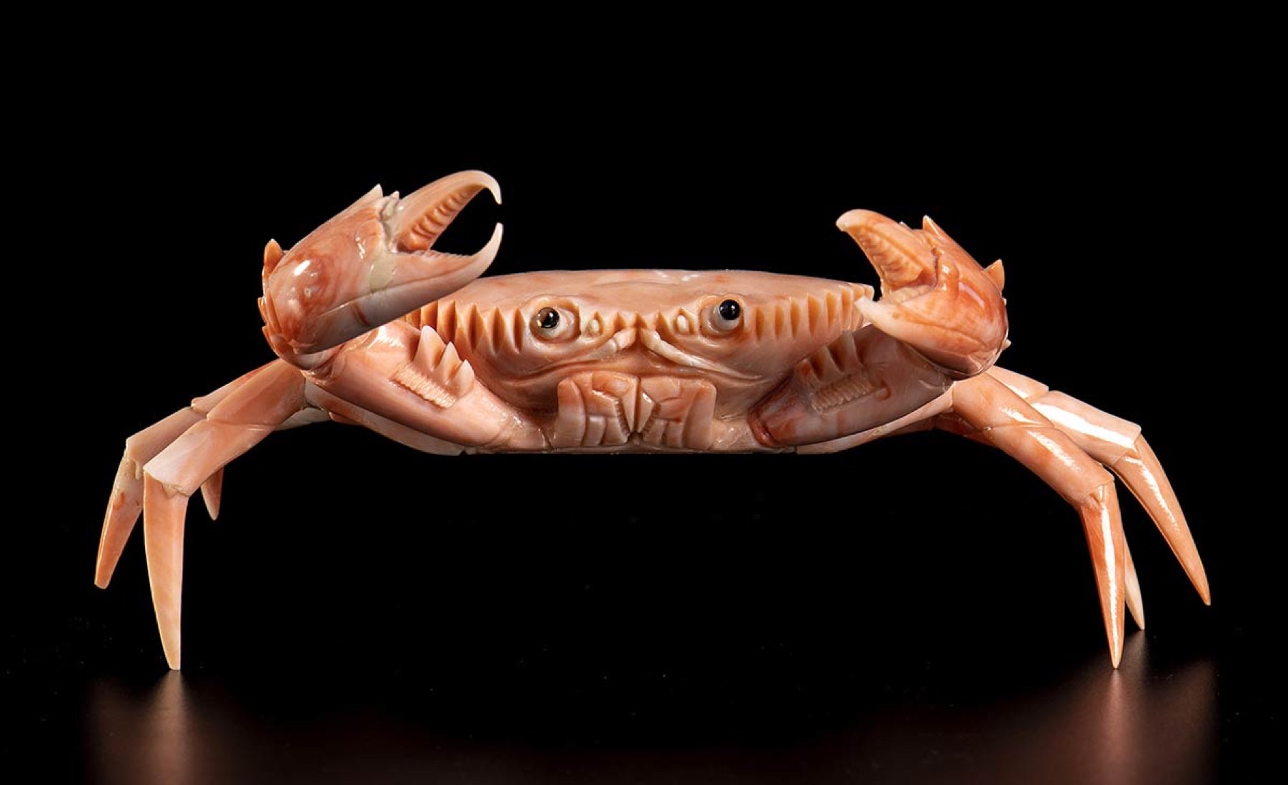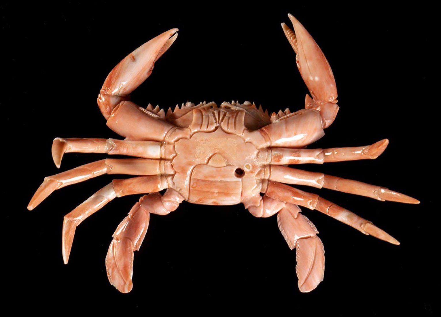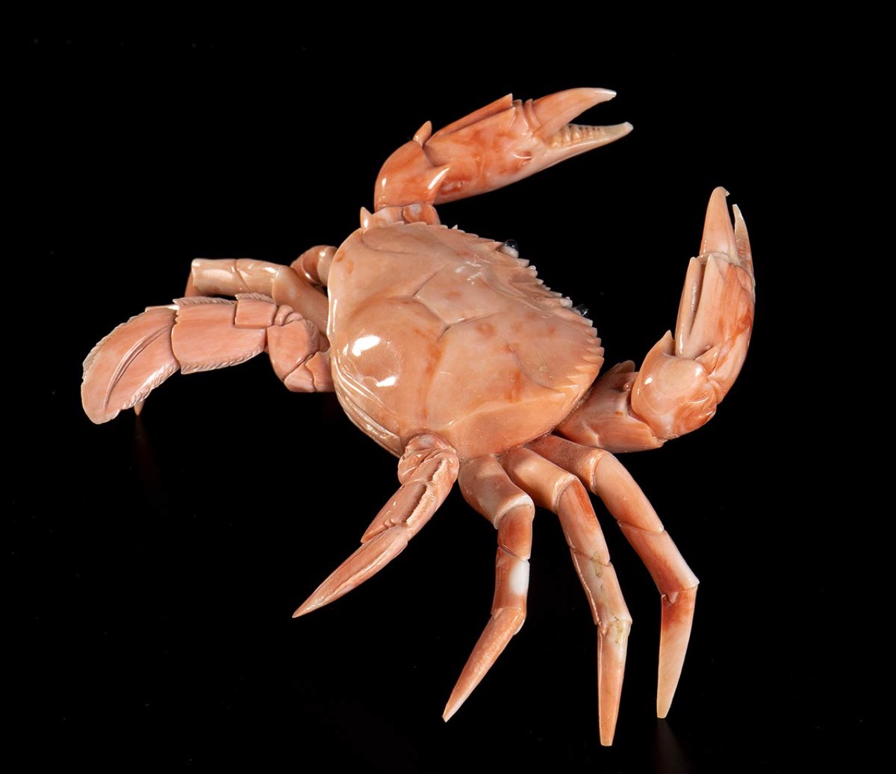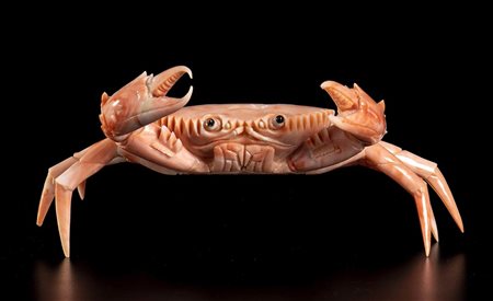 (corallium elatius) raffigurante un granchio. Dimensioni 7 x 6 x 11,2 cm. Peso 195,7 gr. Stato di conservazione: ***** eccellente.