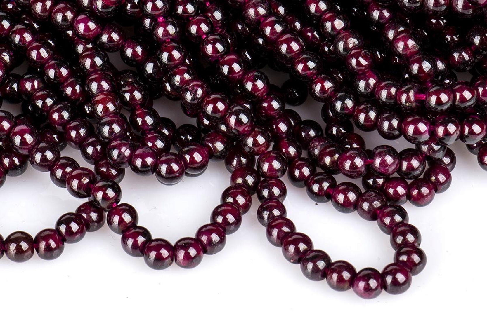 sfere di granato. Diametro 4-5 mm. Lunghezza 40 cm. Peso totale 2460 gr. Stato di conservazione: ***** eccellente.