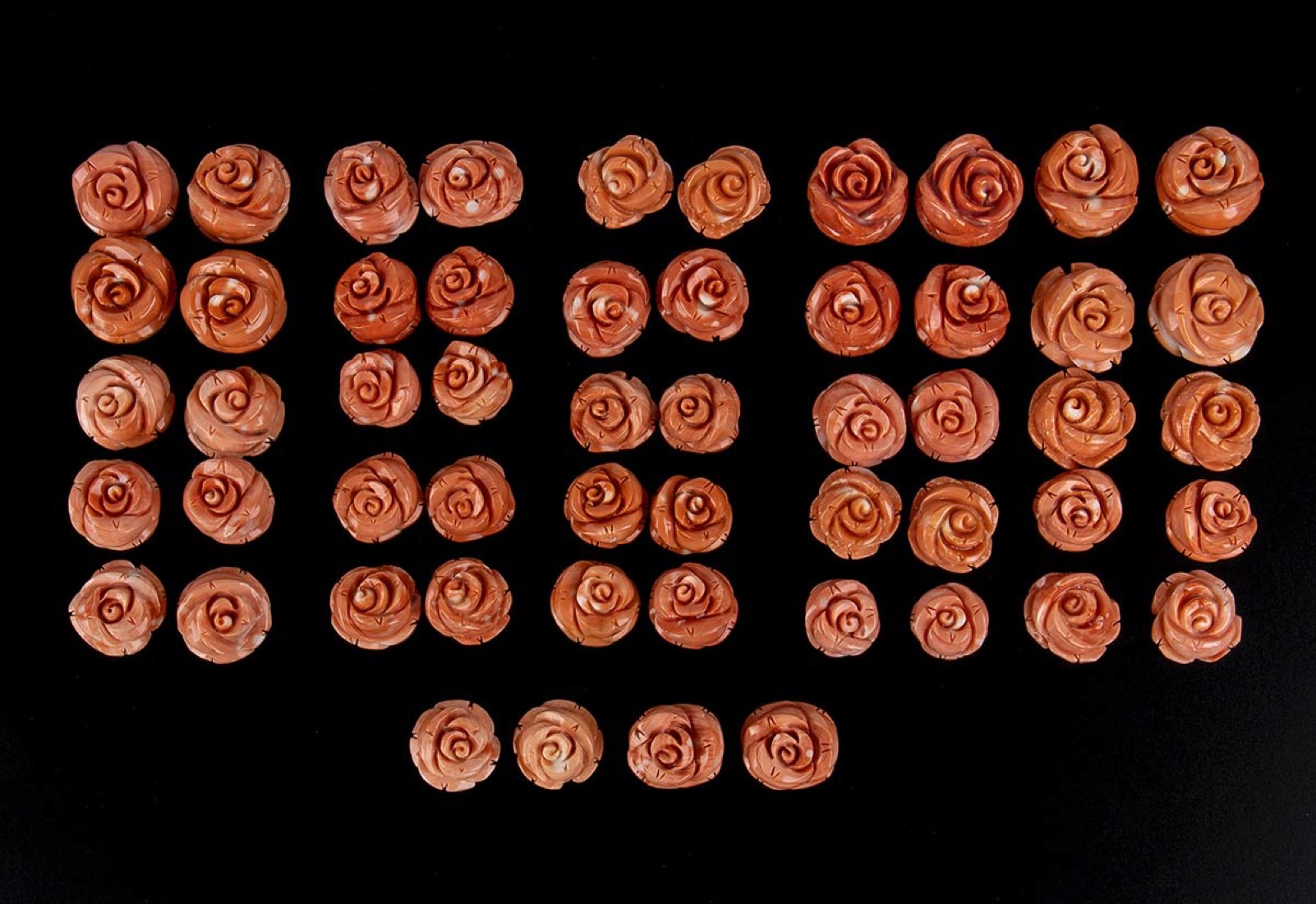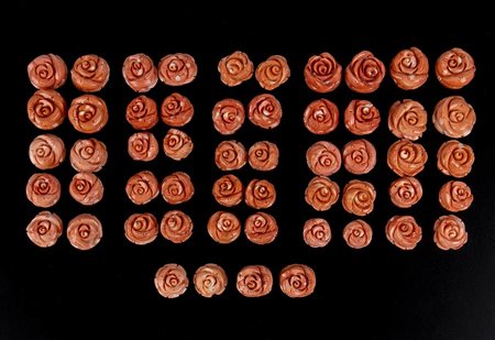 Lotto di 27 coppie di rose in corallo cerasuolo