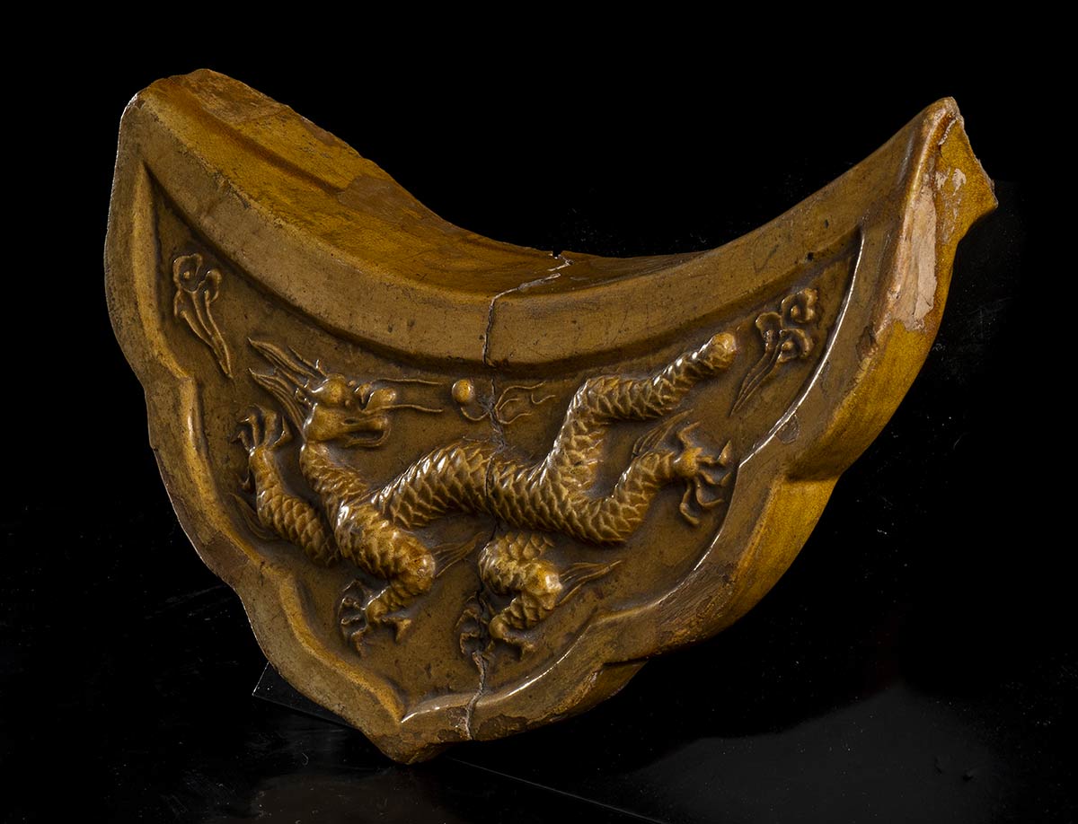 Questa rara tegola proviene con molte probabilità dal tetto di uno degli edifici della Città Proibita a Pechino, destinata quindi all'imperatore e alla sua corte.