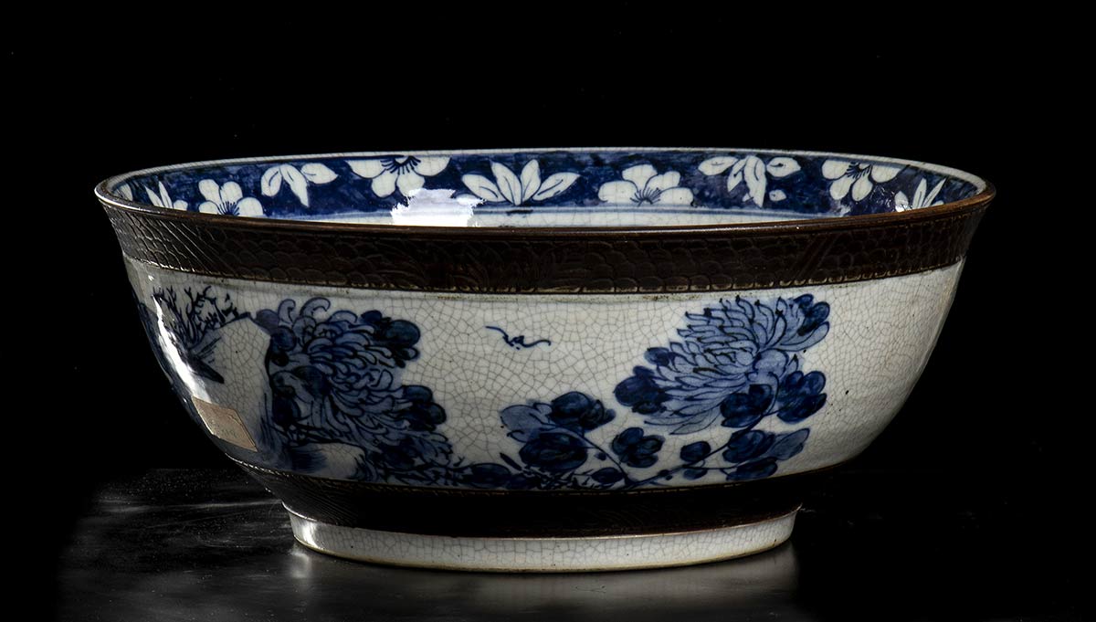 GRANDE BACILE IN PORCELLANA 'BIANCO E BLU' Cina, dinastia Qing, XIX secolo