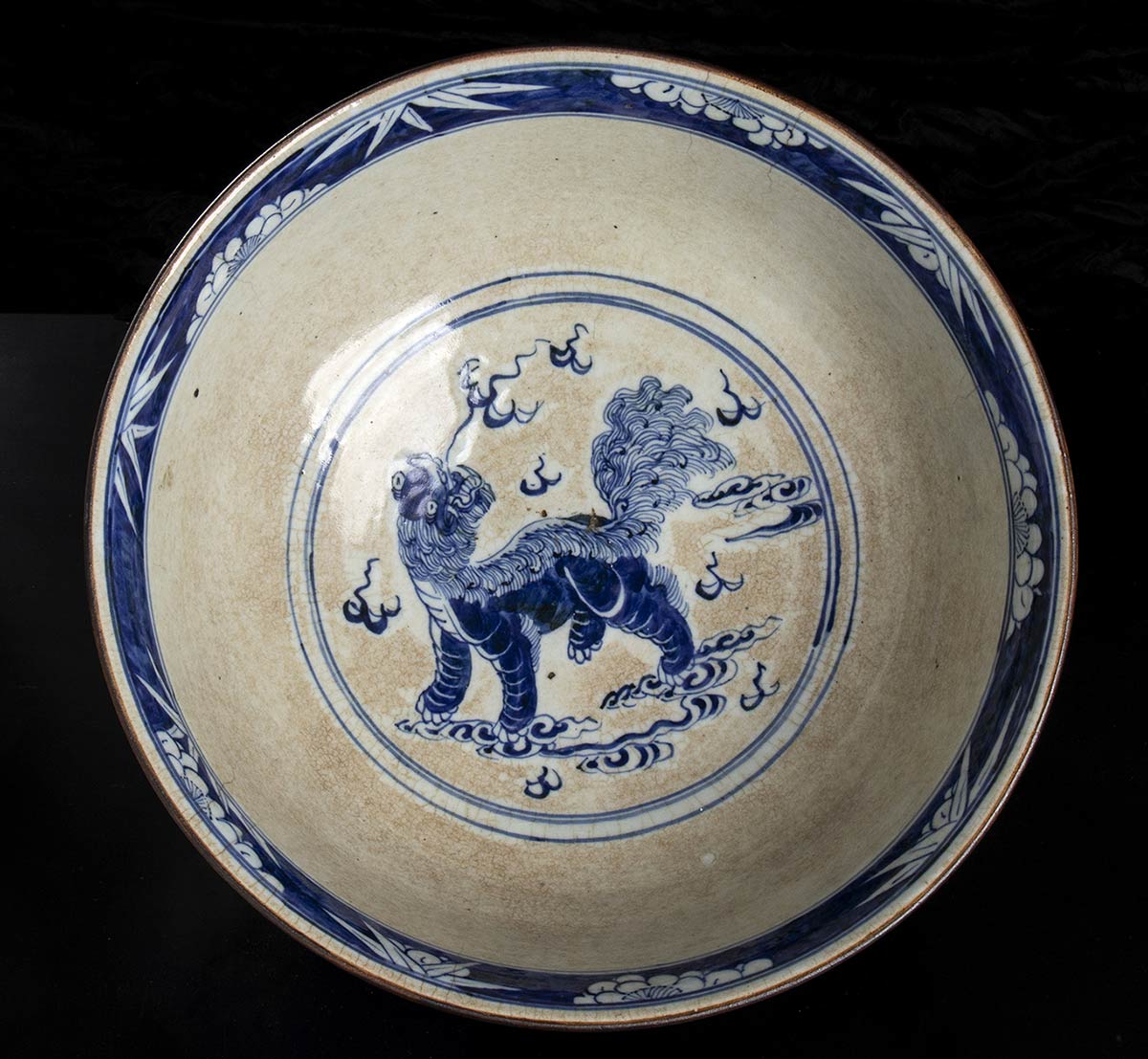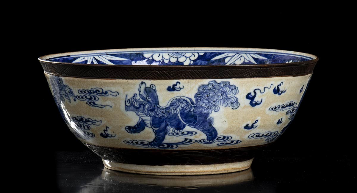 GRANDE BACILE IN PORCELLANA 'BIANCO E BLU' Cina, dinastia Qing, XIX secolo