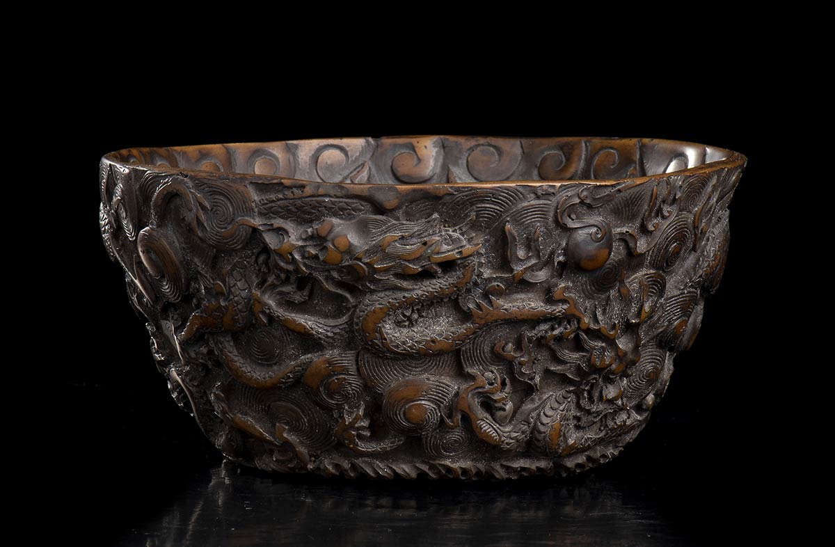 CIOTOLA INTAGLIATA CON DRAGHI Cina, XX secolo