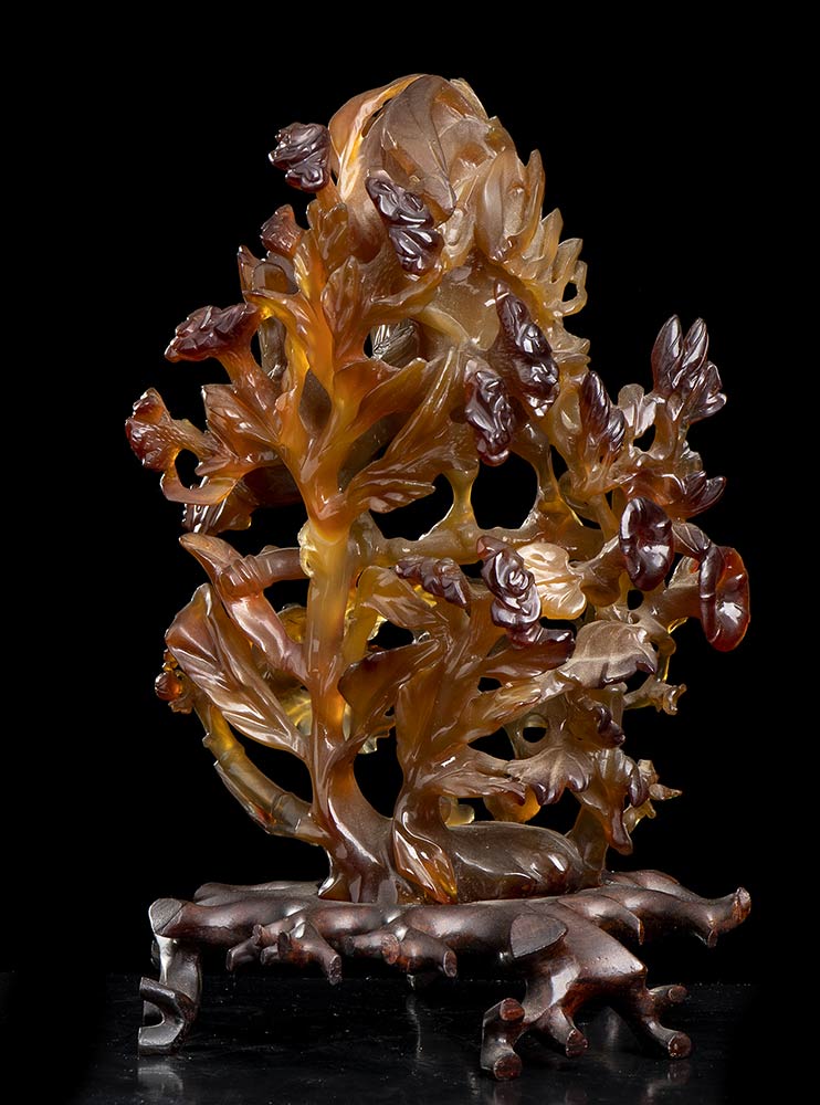 COMPOSIZIONE FLOREALE IN AGATA Cina, XX secolo