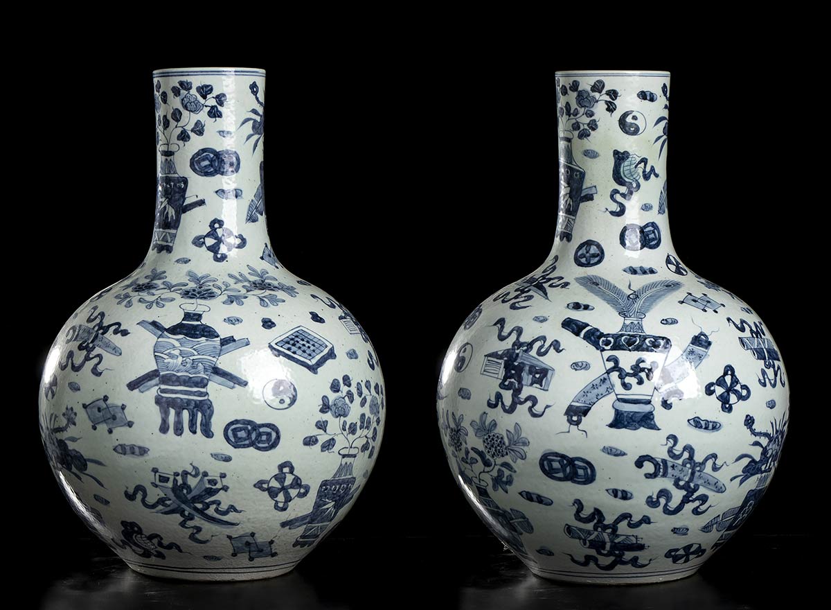 Lot 101 | COPPIA DI GRANDI VASI 'BIANCO E BLU' IN PORCELLANA, TIANQIUPING Cina, XX secolo