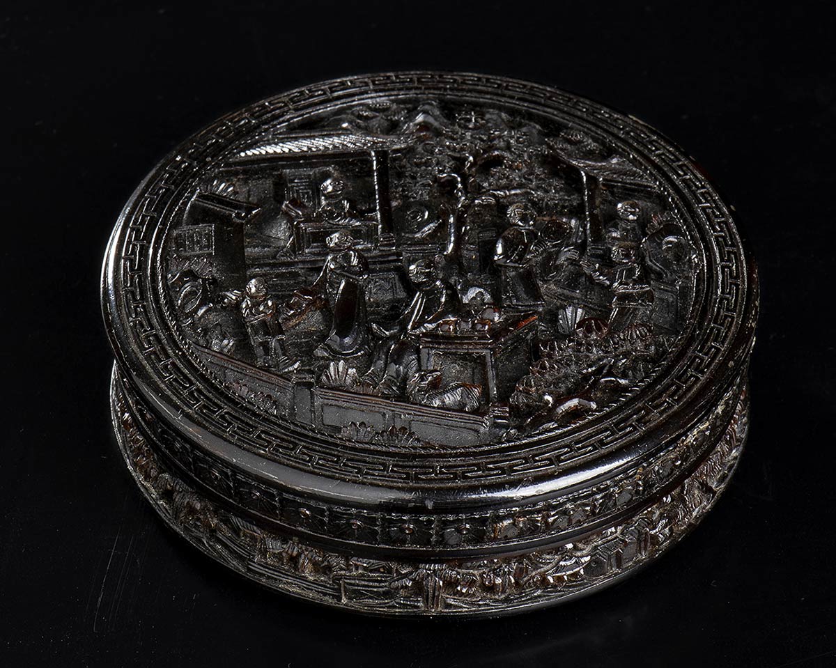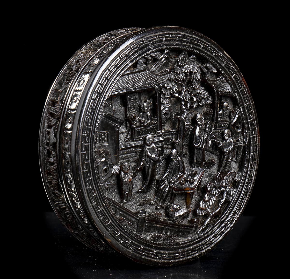 PICCOLA SCATOLA CIRCOLARE CON COPERCHIO IN TARTARUGA Cina, dinastia Qing, XIX secolo