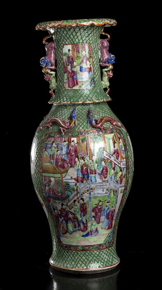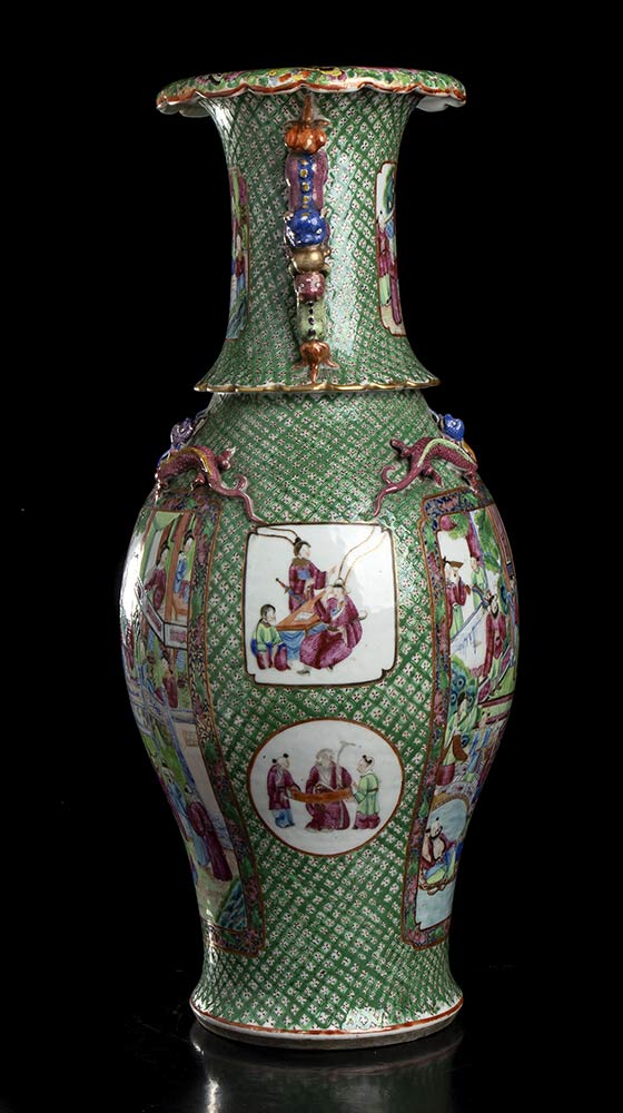 GRANDE VASO A BALAUSTRO IN PORCELLANA 'CANTON' CON DECORO POLICROMO Cina, dinastia Qing, metà del XIX secolo