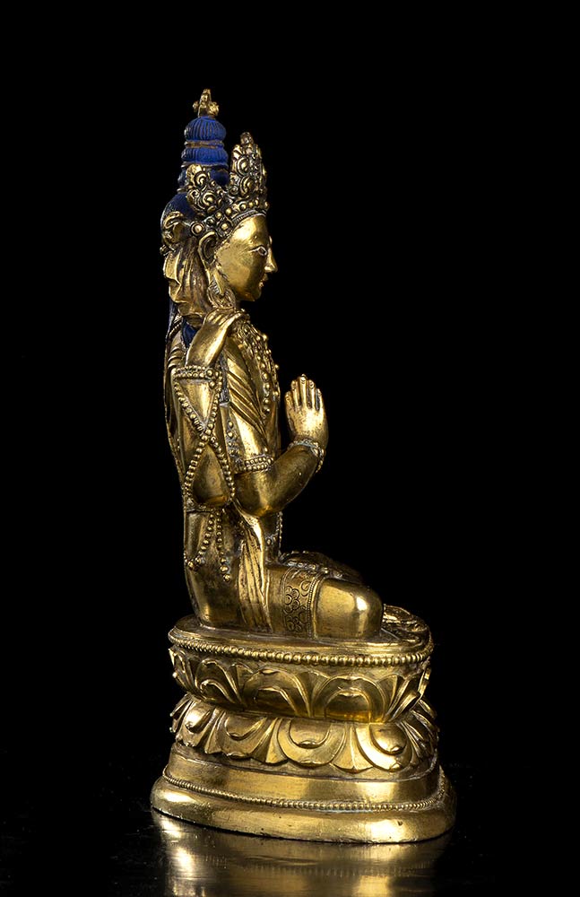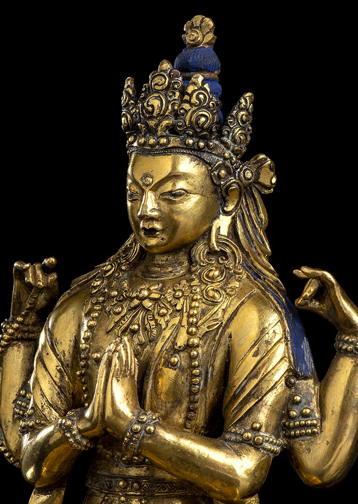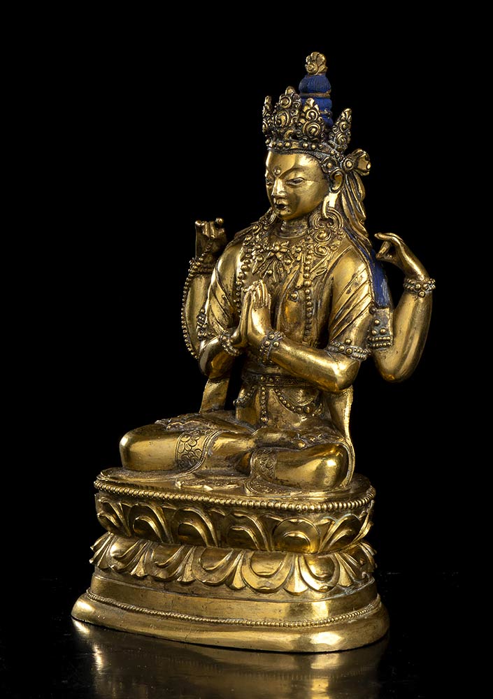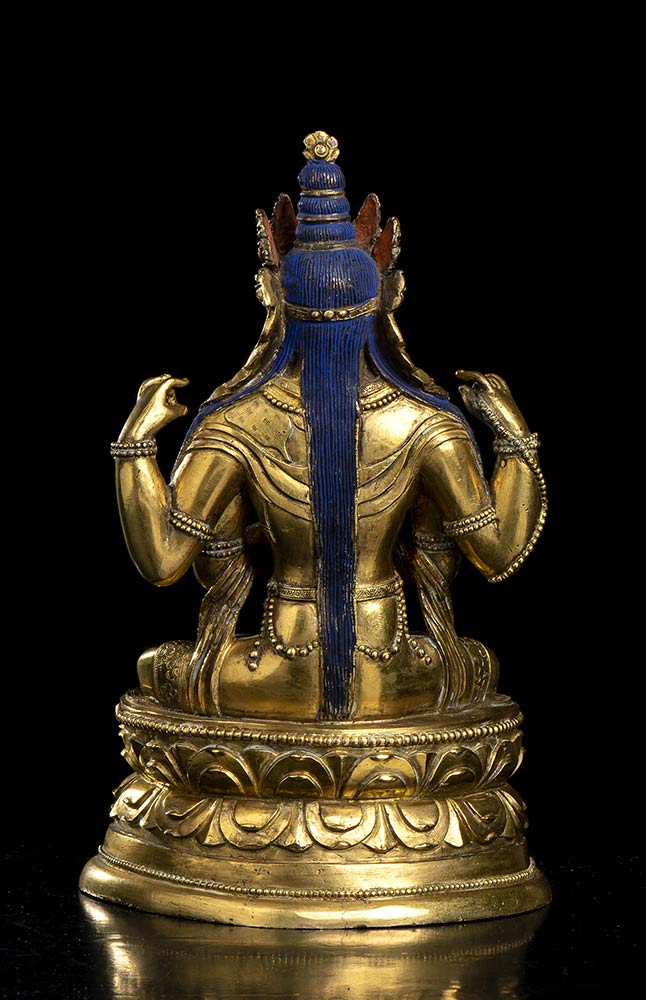 SCULTURA IN BRONZO DORATO CON AVALOKITESVARA A QUATTRO BRACCIA Mongolia, Scuola di Zanabazar, XVIII secolo
