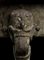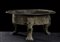 A sezione circolare e ampia tesa piatta, il contenitore è sostenuto da tre zampe che fuoriescono dalle fauci di una testa di animale fantastico.