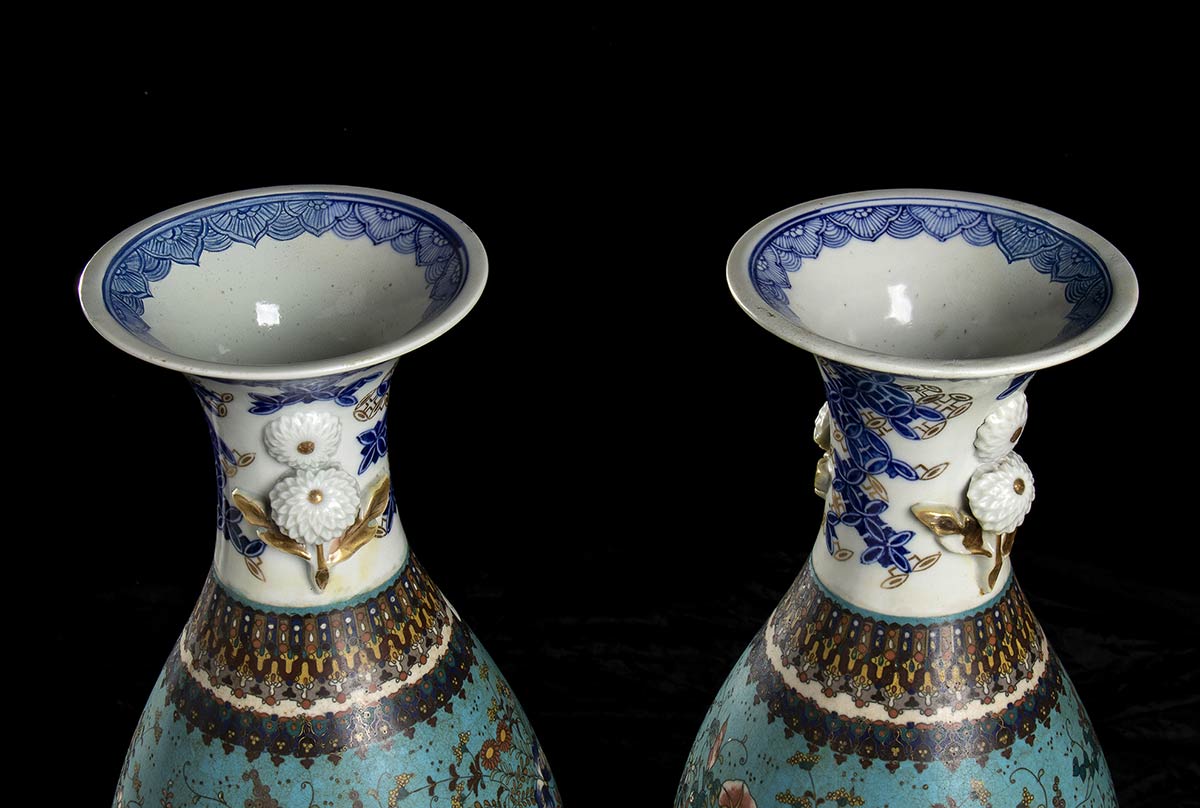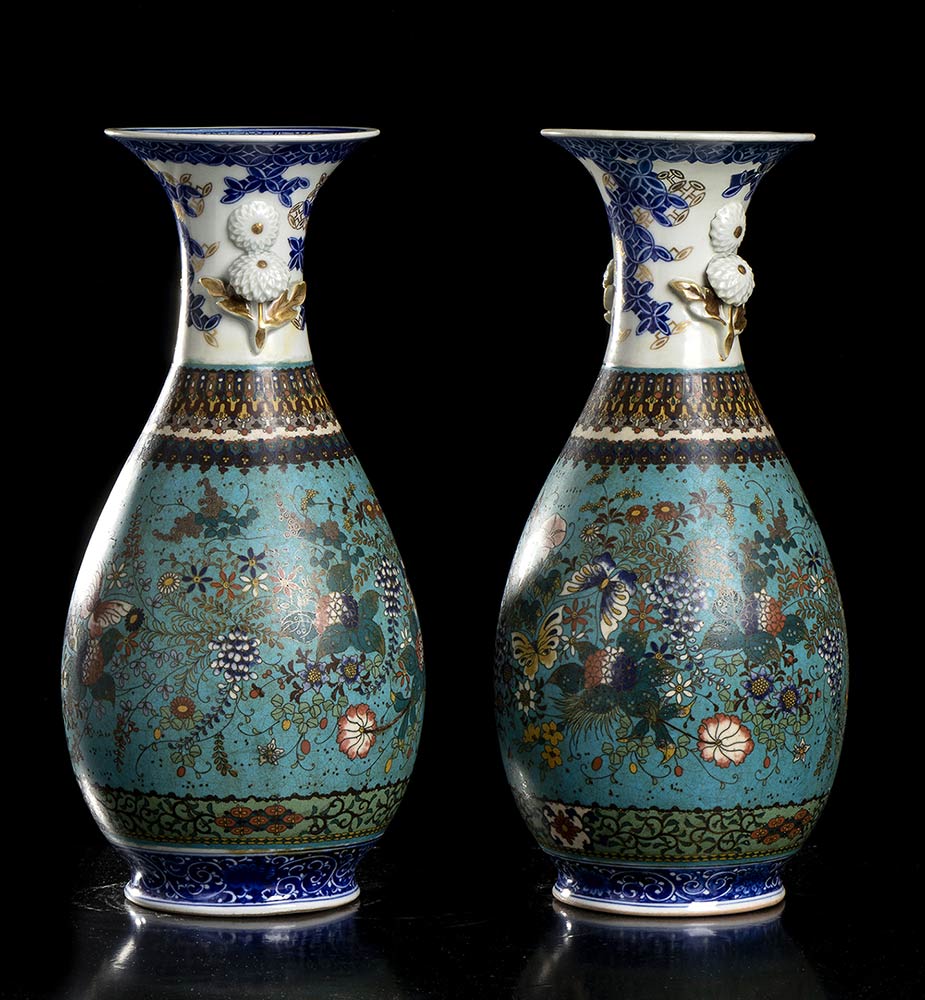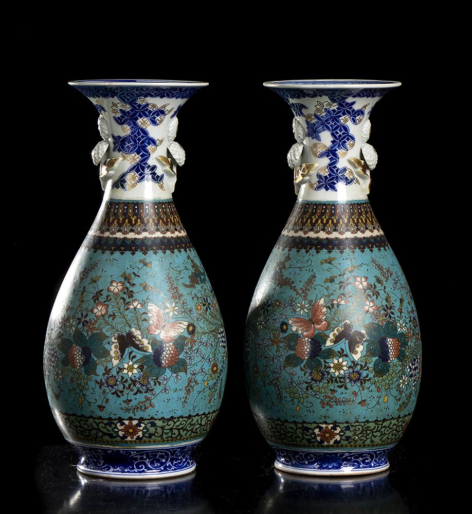 COPPIA DI VASI IN PORCELLANA DECORATI A CLOISONNÉ Giappone, periodo Meiji