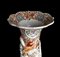 A sezione circolare, con corpo cilindrico e lungo collo tubolare, bocca svasata con orlo modellato in ogive, sull’esterno tra corpo e collo si dipanano le spire di un drago in accentuato rilievo, sulla rimanente superficie ricco decoro policromo con fondo di composizioni floreali su cui si stagliano riserve a contorno mosso al cui interno composizioni floreali e scene con samurai, marchio Hichōzan Fukagawa sei a sei caratteri al centro della base.