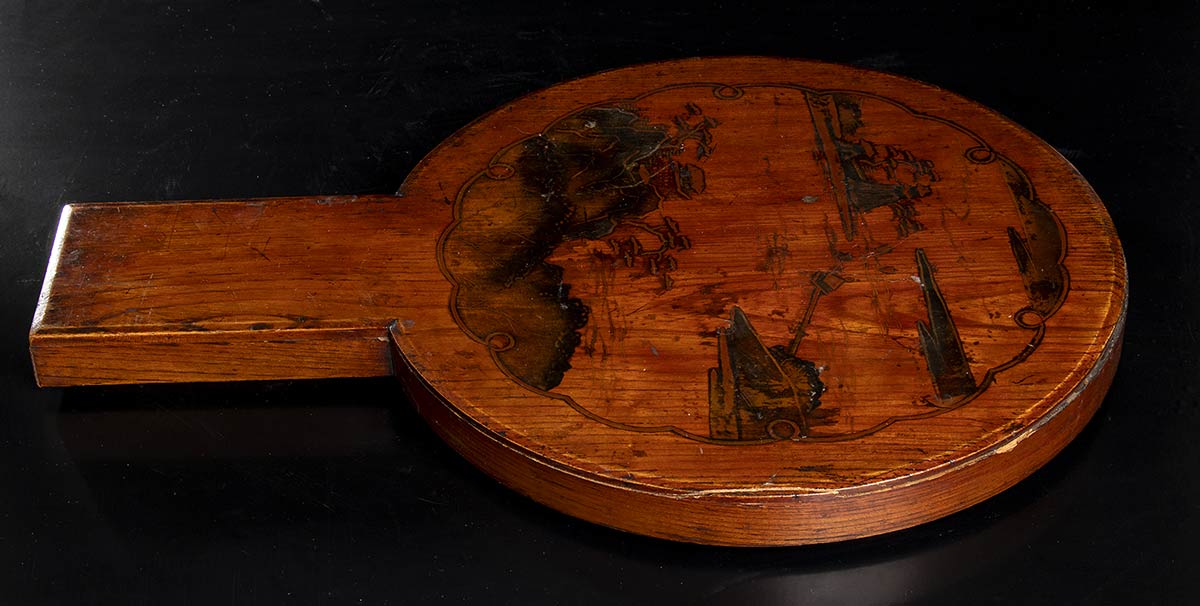 Lot 201 | SPECCHIO IN BRONZO CON SUA CUSTODIA IN LEGNO LACCATO, E-KAGAMI Giappone, periodo Meiji