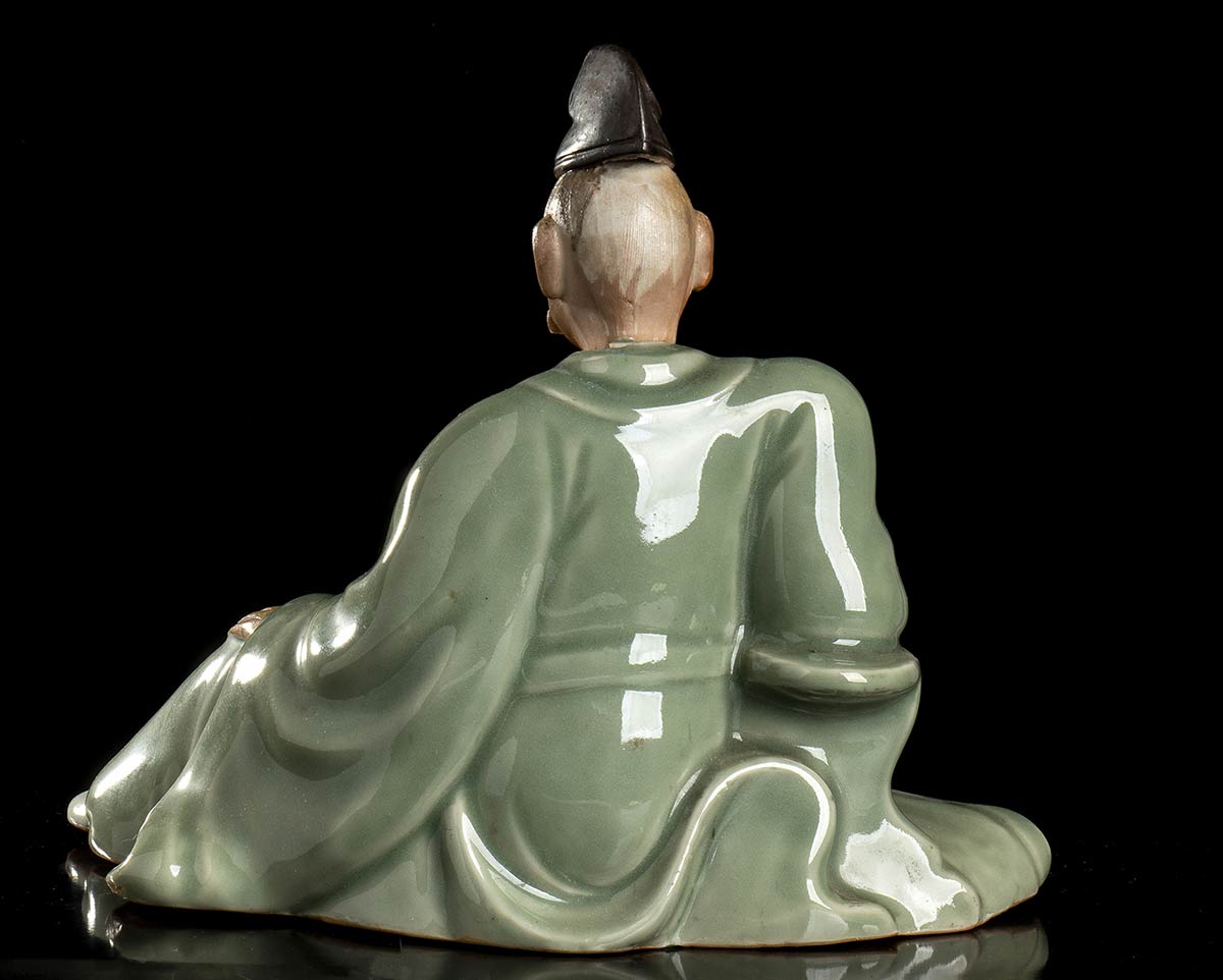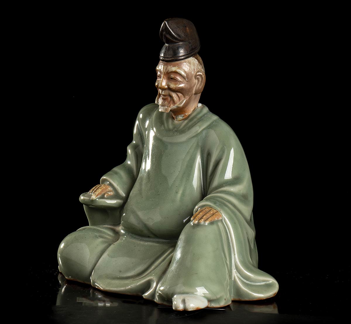 IL POETA KAKINOMOTO NO HITOMARO IN PORCELLANA 'SANDA' CON INVETRIATURA CÉLADON