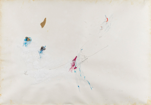 PIER PAOLO CALZOLARI N. 1943 SENZA TITOLO signed and dated 1974, pencil, tempera, salt and collage on paper firmato e datato 1974 matita, tempera, sale e collage su carta cm 70x100 Opera in corso di archiviazione presso l'Archivio Fondazione Calzolari, Roma PROVENANCE Artiscope Contemporary Art Gallery, Bruxelles Galleria Spazia, Bologna Ivi acquistato dall'attuale proprietario nel 2005