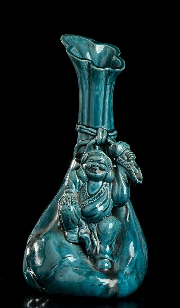 Lot 210 | VASO A BOTTIGLIA IN PORCELLANA CON INVETRIATURA TURCHESE CON DAIKOKU Giappone, periodo Meiji