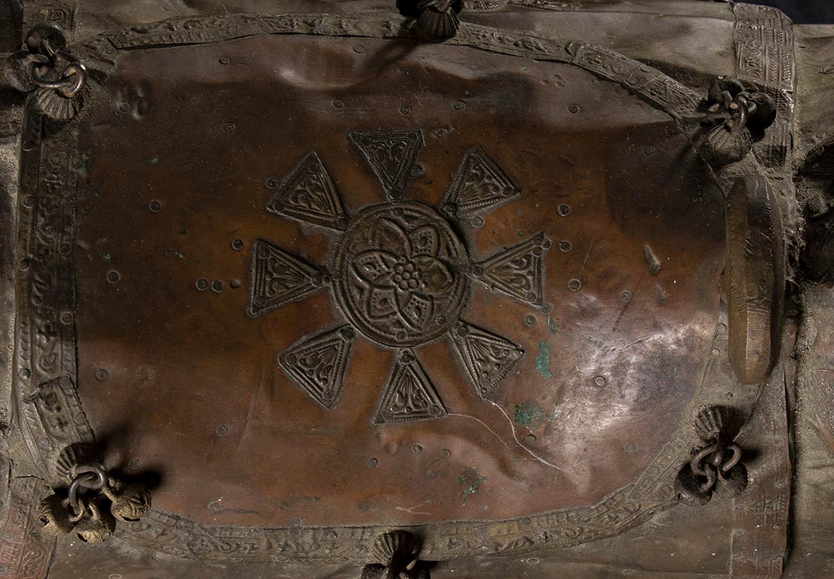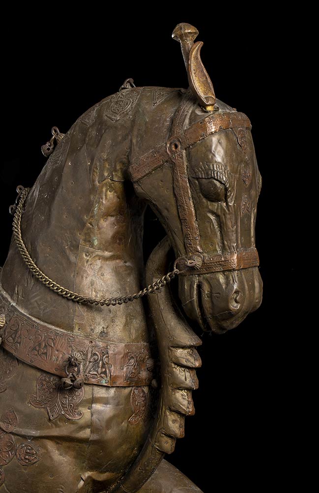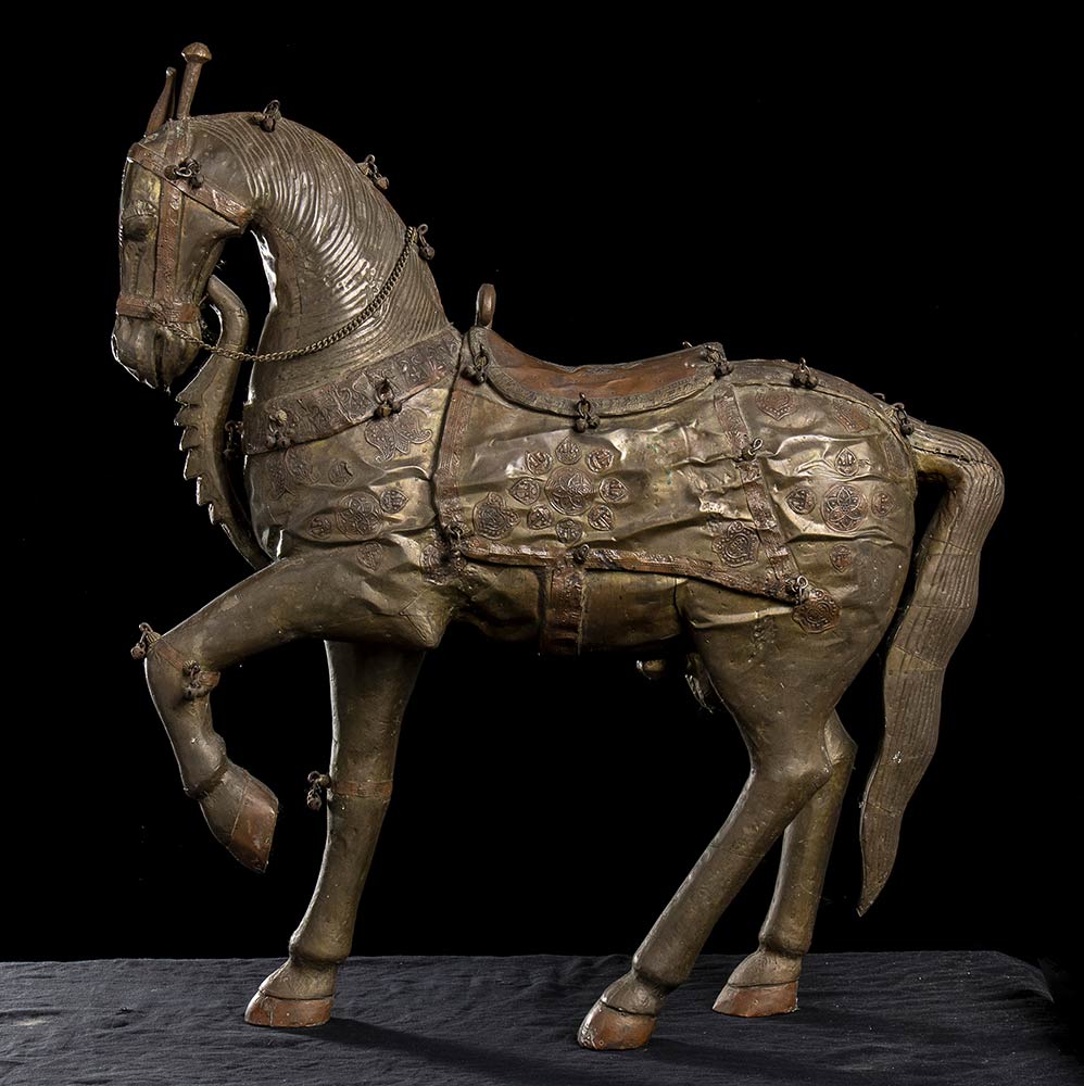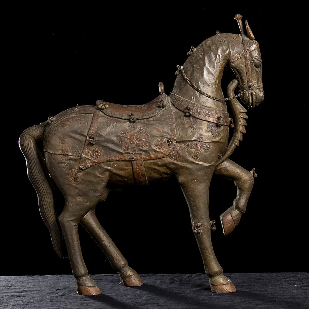 CAVALLO IN LEGNO CON RIVESTIMENTO IN PIASTRA DI RAME India, XX secolo