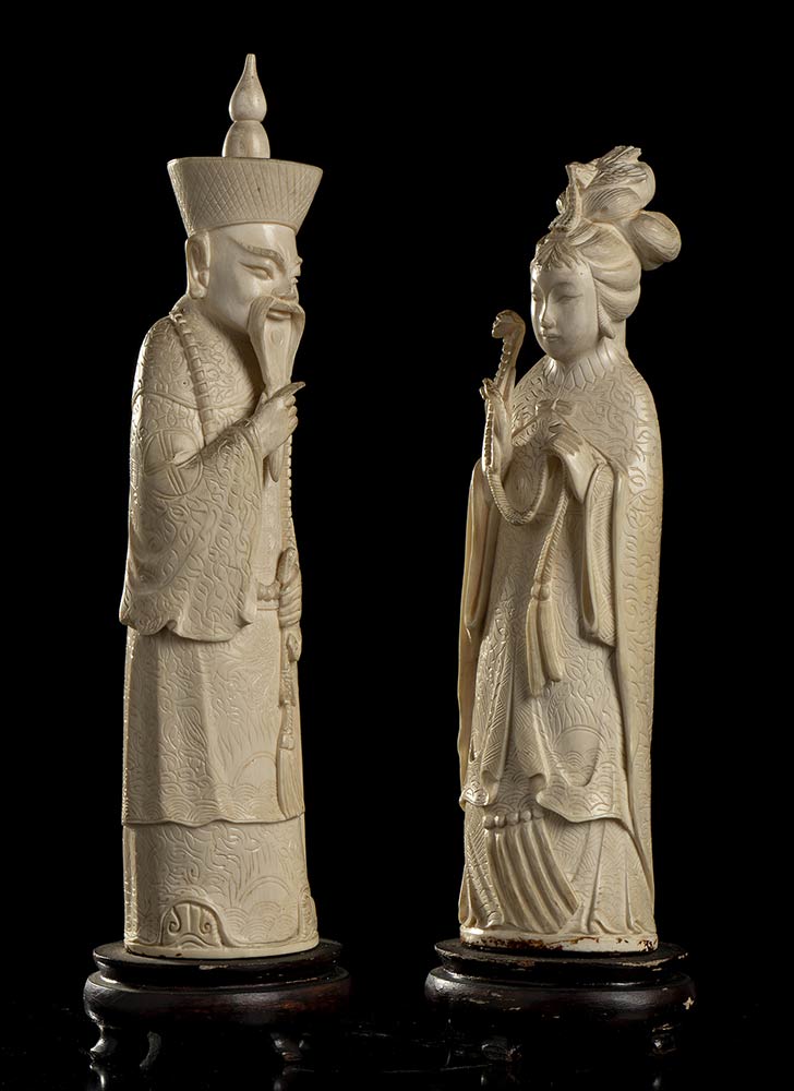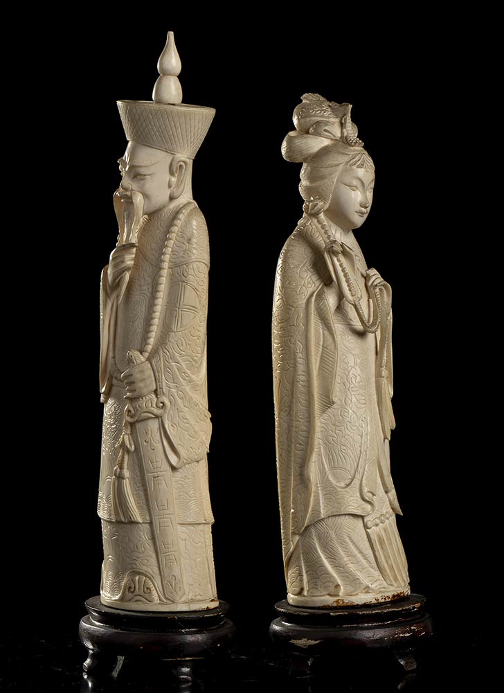 DUE FIGURE IN AVORIO Cina, inizio del XX secolo