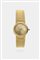 Cassa in oro giallo con lunetta a scalino. Quadrante champagne con indici puntiformi a rilievo