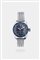 Cassa cromata con fondo a vite e lunetta blu. Quadrante blu con indici applicati, secondi al 6 e datario al 3.