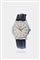 Cassa in acciaio con fondello a vite. Quadrante argento con indici geometrici applicati ed indicazione dei secondi continui al centro.