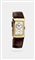 Cassa rettangolare, in oro giallo 10kt; quadrante argenté con numeri arabi e minuteria al 6. Quadrante molto raro con scritta “Chronometer” in rosso. Fibbia originale placcata oro.