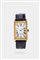 Cassa curva, placcata oro, con fondello a pressione. Quadrante bianco con numeri romani serigrafati e minuteria aperta centrale. Indicazione dei secondi continui ad ore 6.
