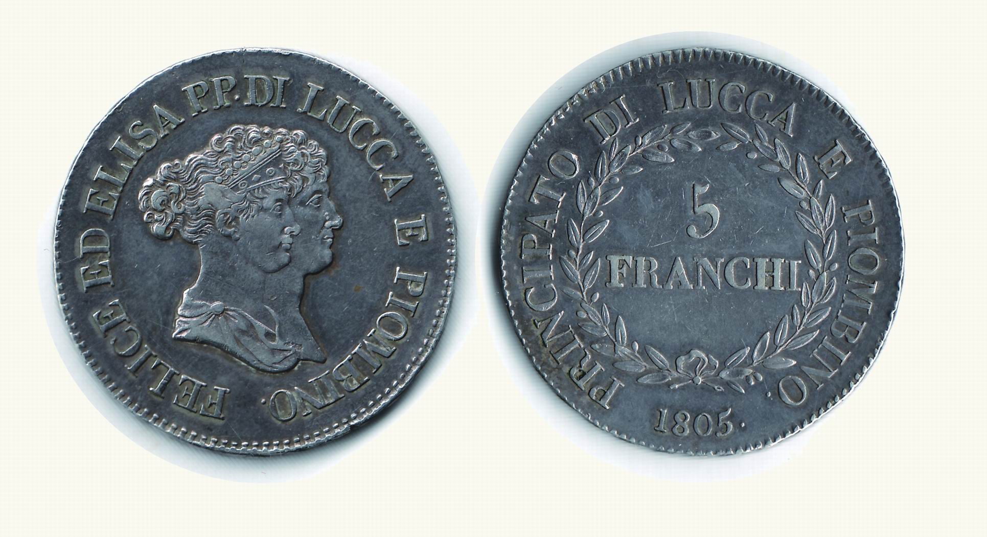 Monete di Città Italiane - LUCCA e PIOMBINO - Felice ed Elisa - 5 Franchi