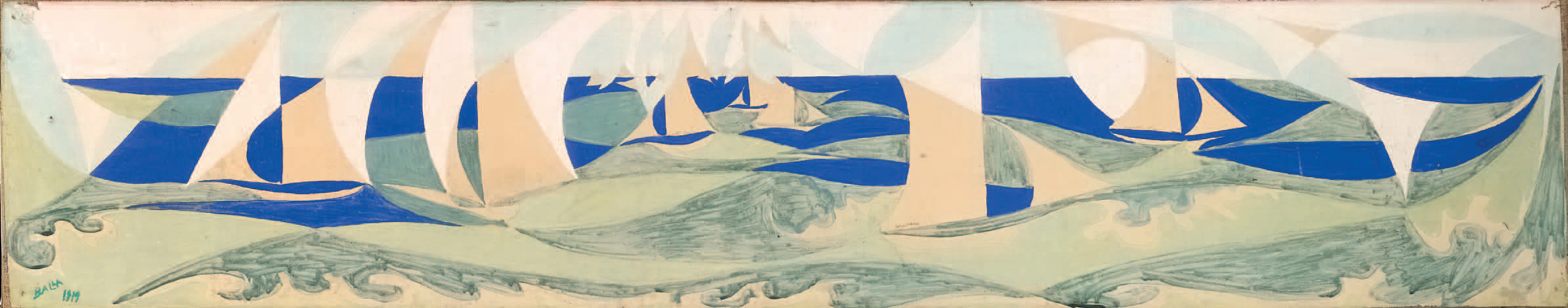 GIACOMO BALLA (1871-1958) Linee forza di mare firmato e datato BALLA 1919 (in basso a sinistra) tempera su carta applicata su tela cm 36x181,2 Eseguito nel 1919 P R O V E N I E N Z A : Casa Balla, Roma (n. 529, targhetta sul retro) ivi acquisito dall’attuale proprietario nel 1994 c. E S P O S I Z I O N I : Roma, Studio SM 13, Balla nel tondo, aprile 1967, cat. Roma, Chiostro del Bramante, Balla Futurismo tra arte e moda - opere della fondazione Biagiotti-Cigna, 30 ottobre 1998 - 31 gennaio 1999, cat. San Paolo, Pinacoteca di Stato, GIACOMO BALLA 1894-1946. Da io Balla a Ball’io, 12 maggio - 30 giugno 2000; poi Montevideo, Museo Nacional de Artes Visuales, 24 luglio - 20 agosto 2000; poi Buenos Aires, Museo Nacional de Bellas Artes, 5 settembre - 5 ottobre 2000; poi Cordoba, Museo Municipal de Bellas Artes, 13 - 29 ottobre 2000; poi Recife, Espaco Cultural Bandepe, 16 novembre - 15 dicembre 2000; poi Santiago del Cile, Museo Nacional de Bellas Artes, 25 gennaio - 31 marzo 2001; poi Città del Messico, Palacio de Correos, 9 maggio - settembre 2001, cat, p. 108, n. 48 (illustrato) B I B L I O G R A F I A : M. Drudi Gambillo, T. Fiori, Archivi del Futurismo, Roma 1962, vol. II, p. 170, n. 317/e (con titolo Mare) G. Lista, Balla, Modena 1982, p. 304, n. 636 (illustrato); p. 305; p. 522 n. 636