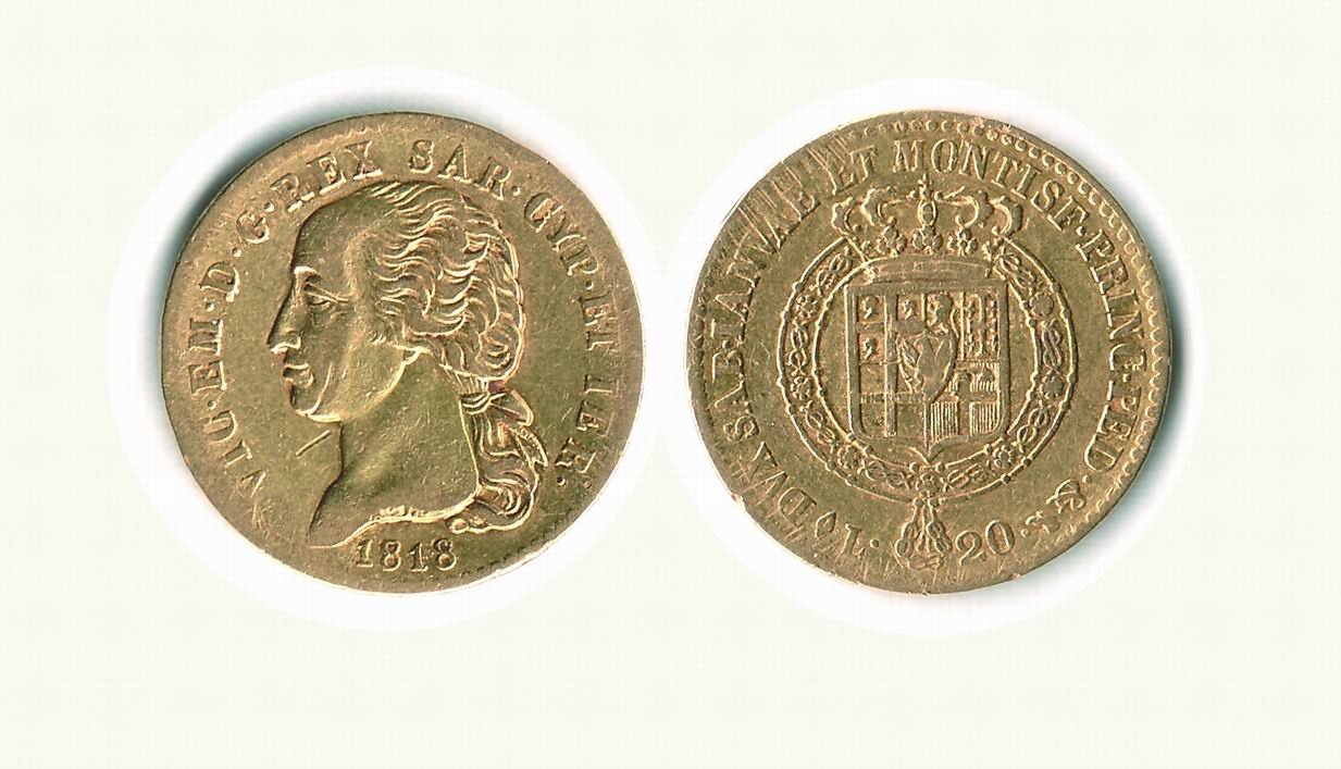 Monete Decimali - SAVOIA - Vittorio Emanuele I (1802-1821) - 20 Lire 1818.