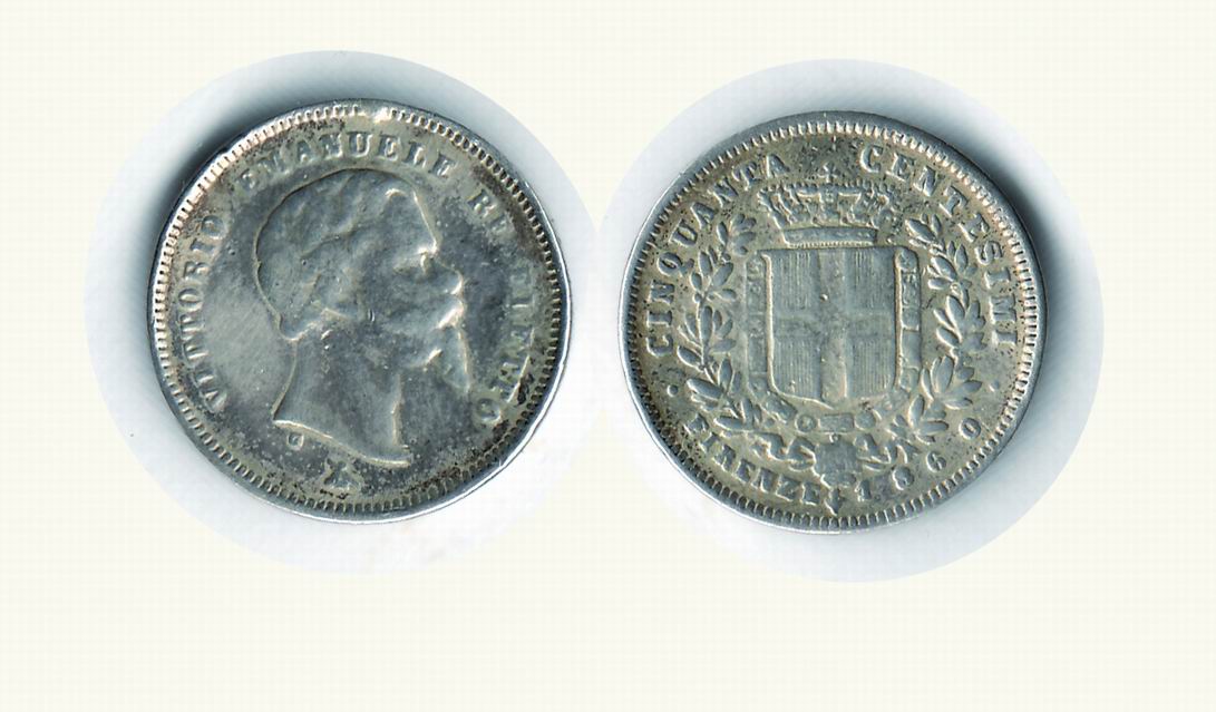 Monete Decimali - SAVOIA - Vittorio Emanuele II - Re eletto - 50 Cent. 1860 Fi.