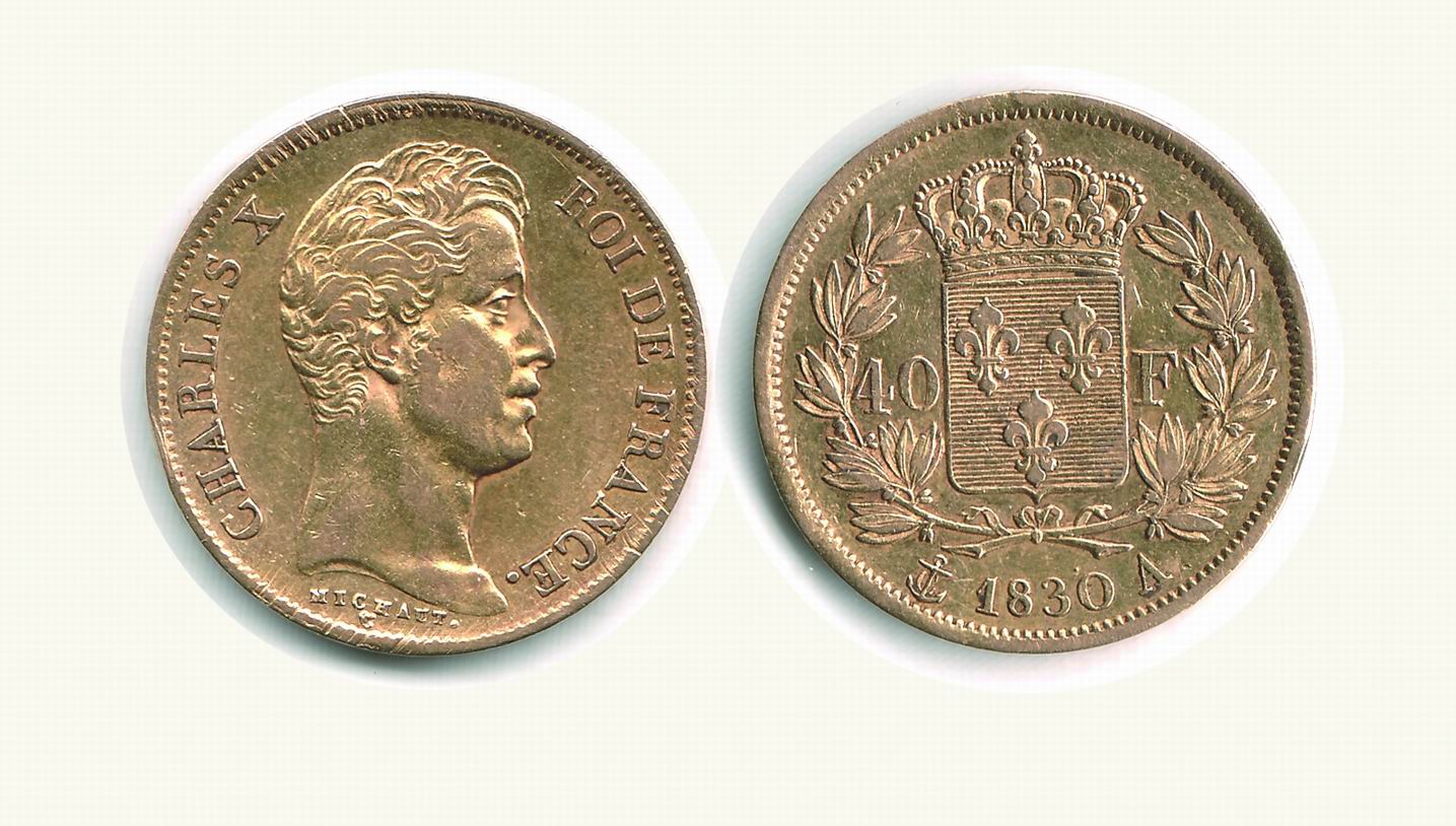 FRANCIA - Carlo X (1824-1830) - 40 Franchi 1830. BB+/SPL