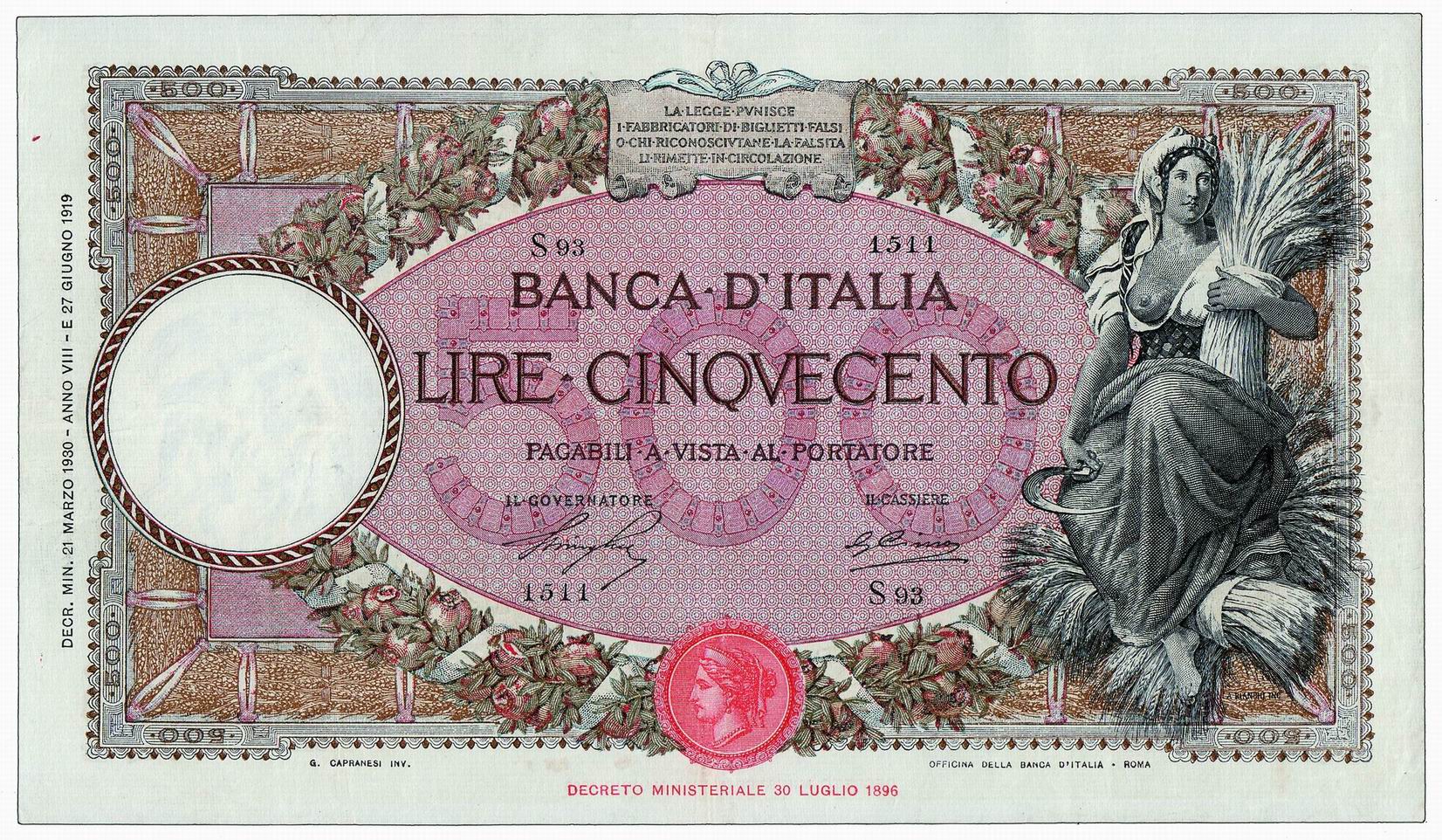 Cartamoneta - REGNO D’ITALIA - VITTORIO EMANUELE III - 500 Lire Mietitrice