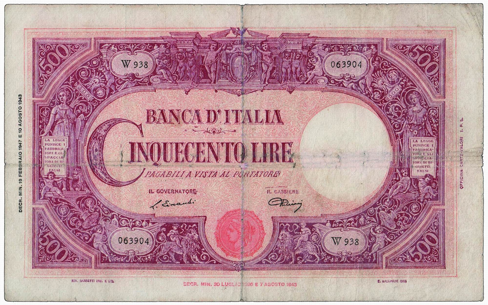 Cartamoneta - REPUBBLICA ITALIANA - 500 Lire C grande - Decr. 19/02/1947.
